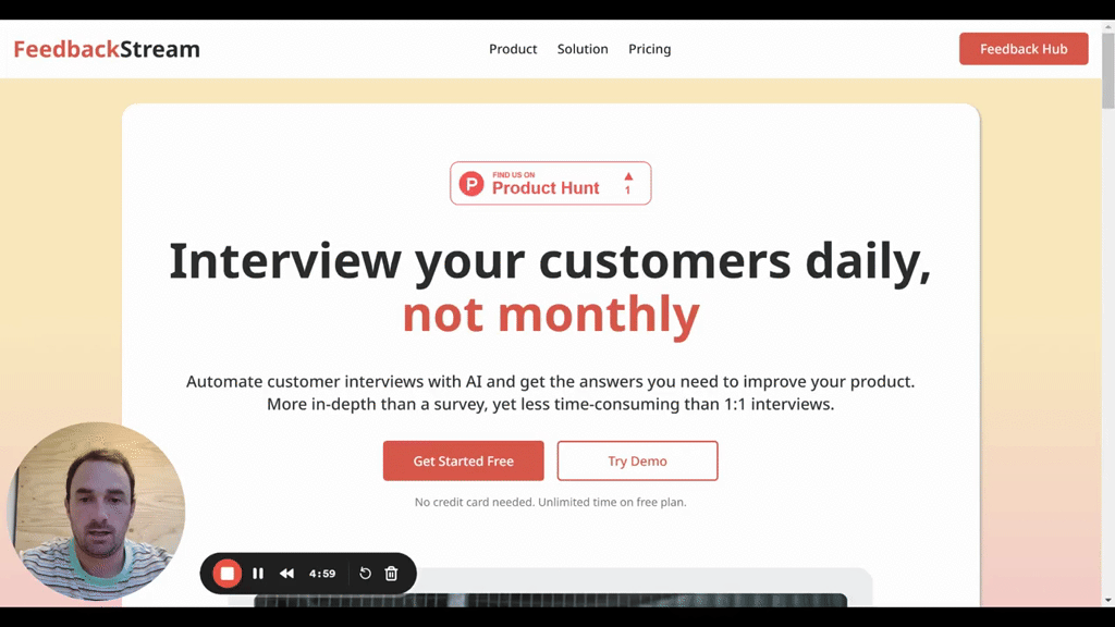 ## 概要 FeedbackStreamは、顧客との対話を効率的かつ効果的に行うためのAIツールです。人間のように感じられるAIを利用して、顧客インタビューを行います。 ## 特徴 - 調査よ...