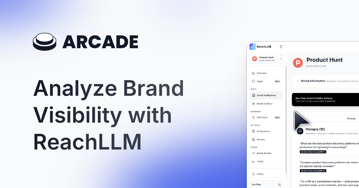 ReachLLMは、AI検索とLLMの可視性を統合するプラットフォーム。キャッチコピーは「AI検索時代をリードする」。複数のLLMがブランドをどう表現するかを比較し、競合と実際の検索プロンプトま...