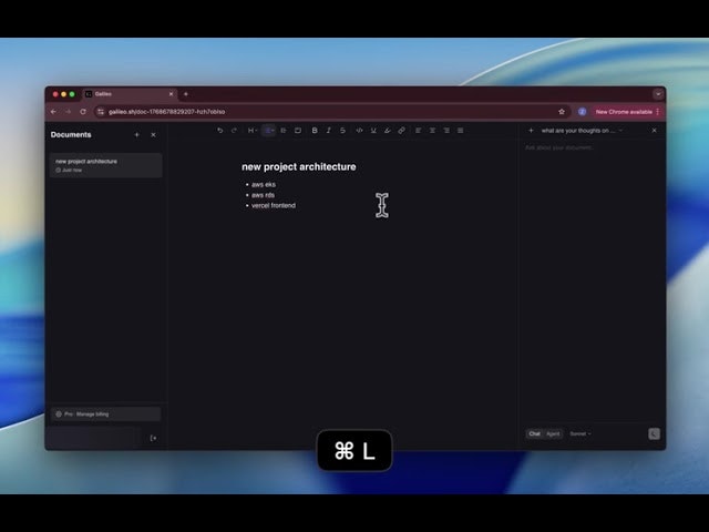 Cursorをメモ取りのワークフローとしてクラウド版に移した、基本的なノート作成ツール。エディタのテキストメモとブレインストーミング用のチャットパネルを組み合わせ、思考の流れをクラウド上で蓄積・...