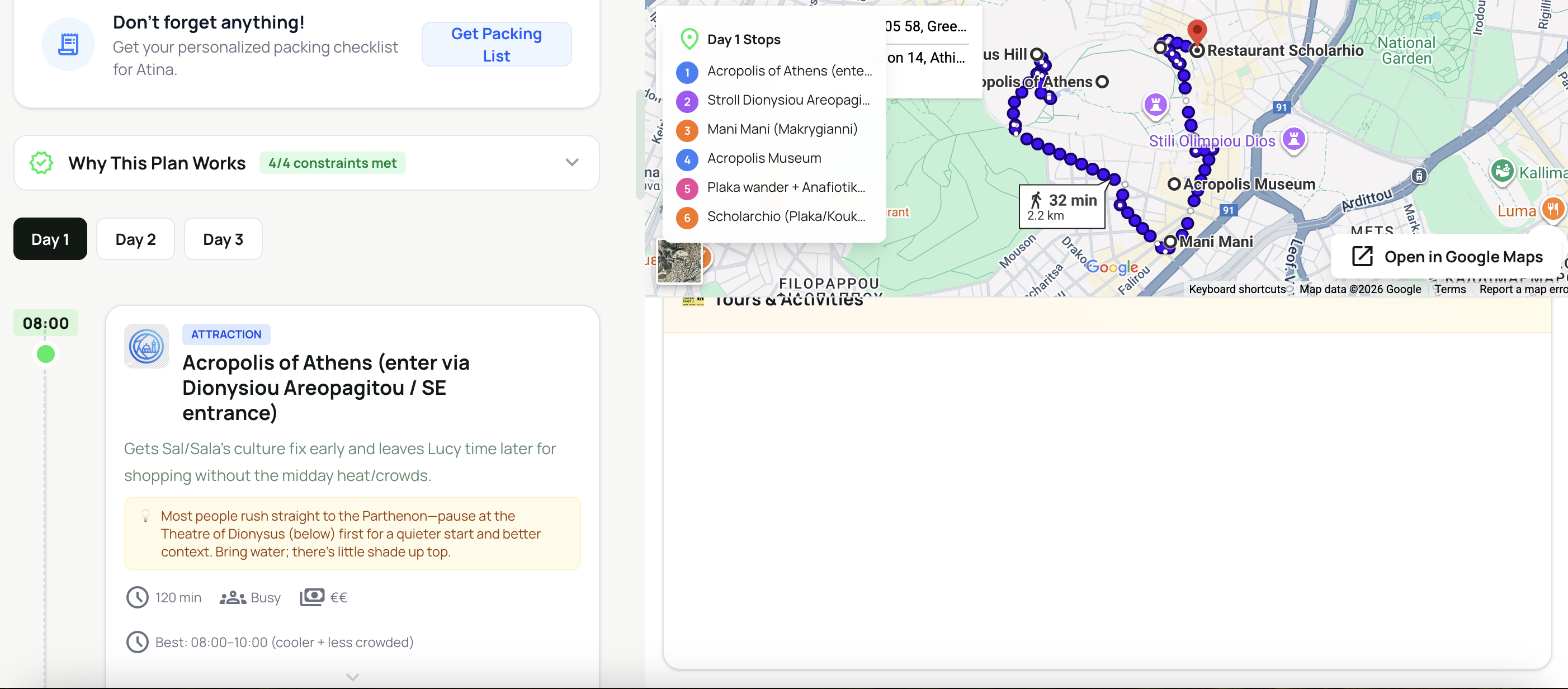 制約を入力して日程案を作成、予約へ。旅を素早く計画。