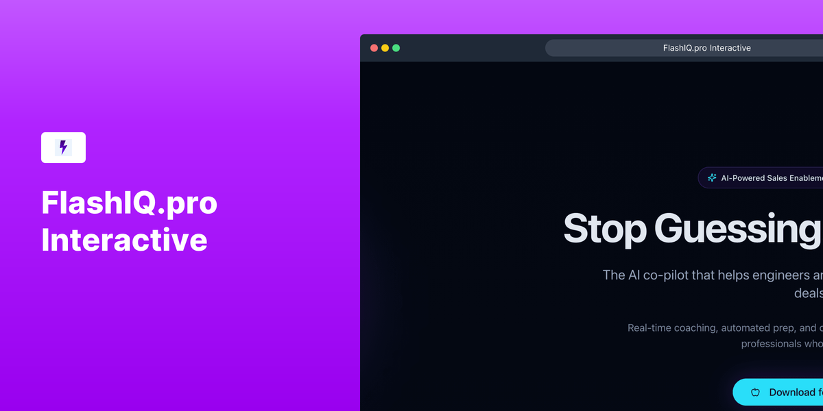 ## 概要 FlashIQは、開発と販売を同時に進める創業者向けのAIセールス・コパイロットです。反論対応、ROI説明、商談の沈黙といった場面を実務寄りの支援で改善します。短時間で使える提案と質...