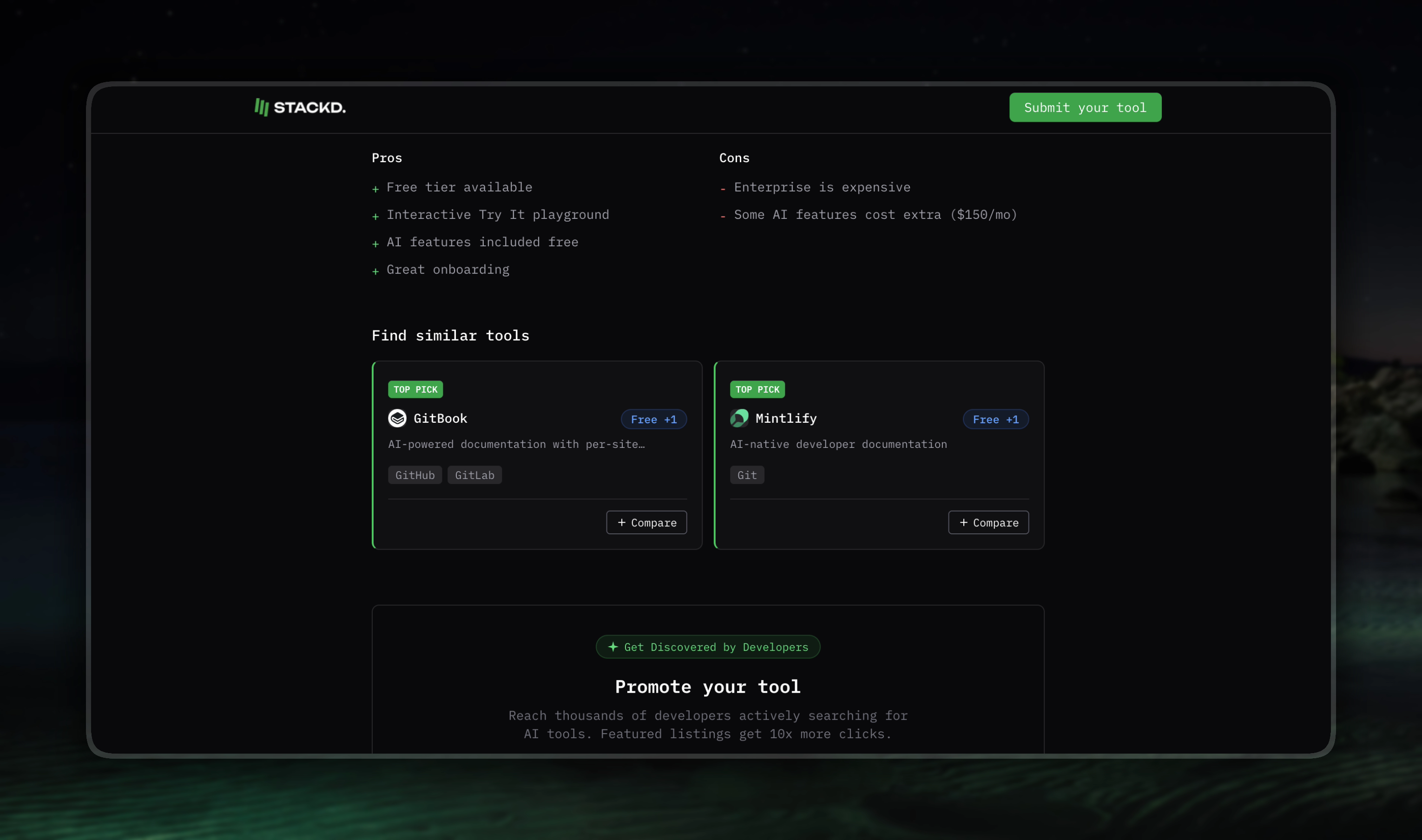 ## Stackdの概要 - AI開発ツールの価格を検証済みで横並び比較できるディレクトリ。 - 観測性・コードレビュー・ベクトルデータベース・エージェントフレームワークなど、実務で使われるツー...