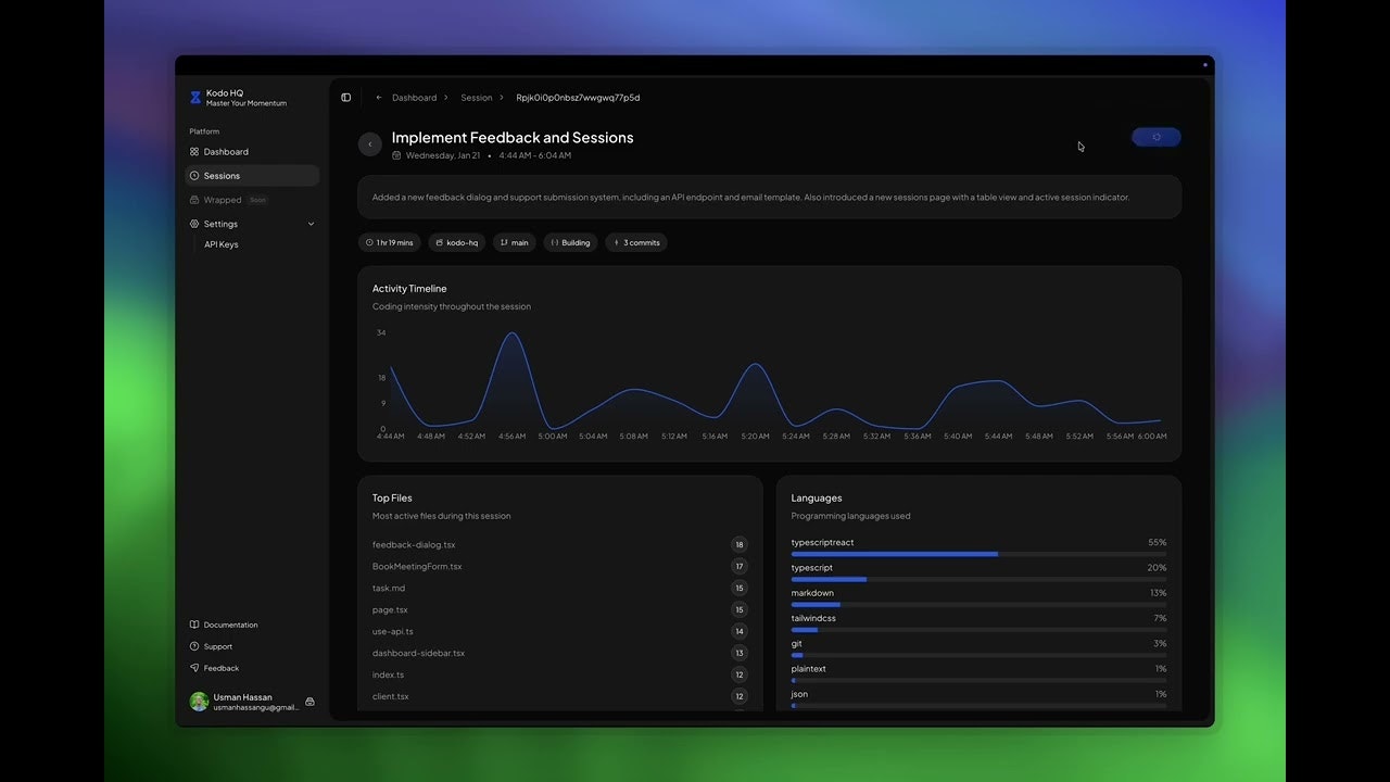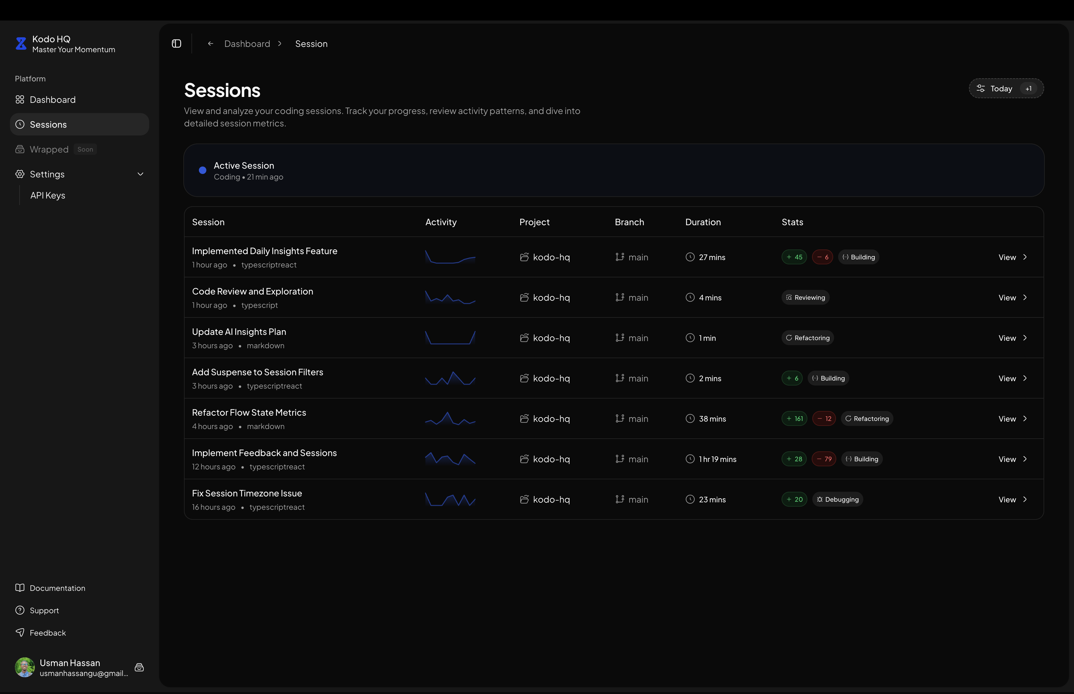 ## 概要 Kodoは、時間だけを追う従来ツールとは異なり、実際に作った内容の物語を提供する開発者向けの物語型AIコーチです。スタンドアップをワンクリックで生成し、AI要約、複数人格のコーチ、メ...