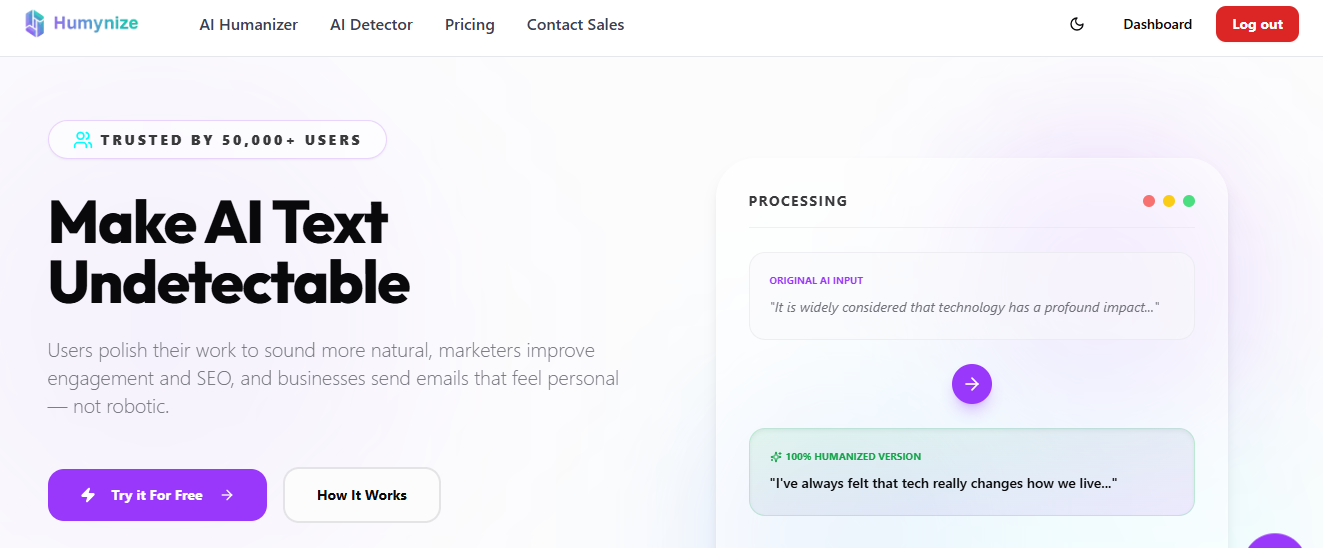 ## 製品概要 Humynizeは、学生・専門家向けの最先端AIテキスト人間化ツールです。ChatGPT、Claude、Gemini の文章を自然で人間が書いたような表現へ変換し、Turniti...