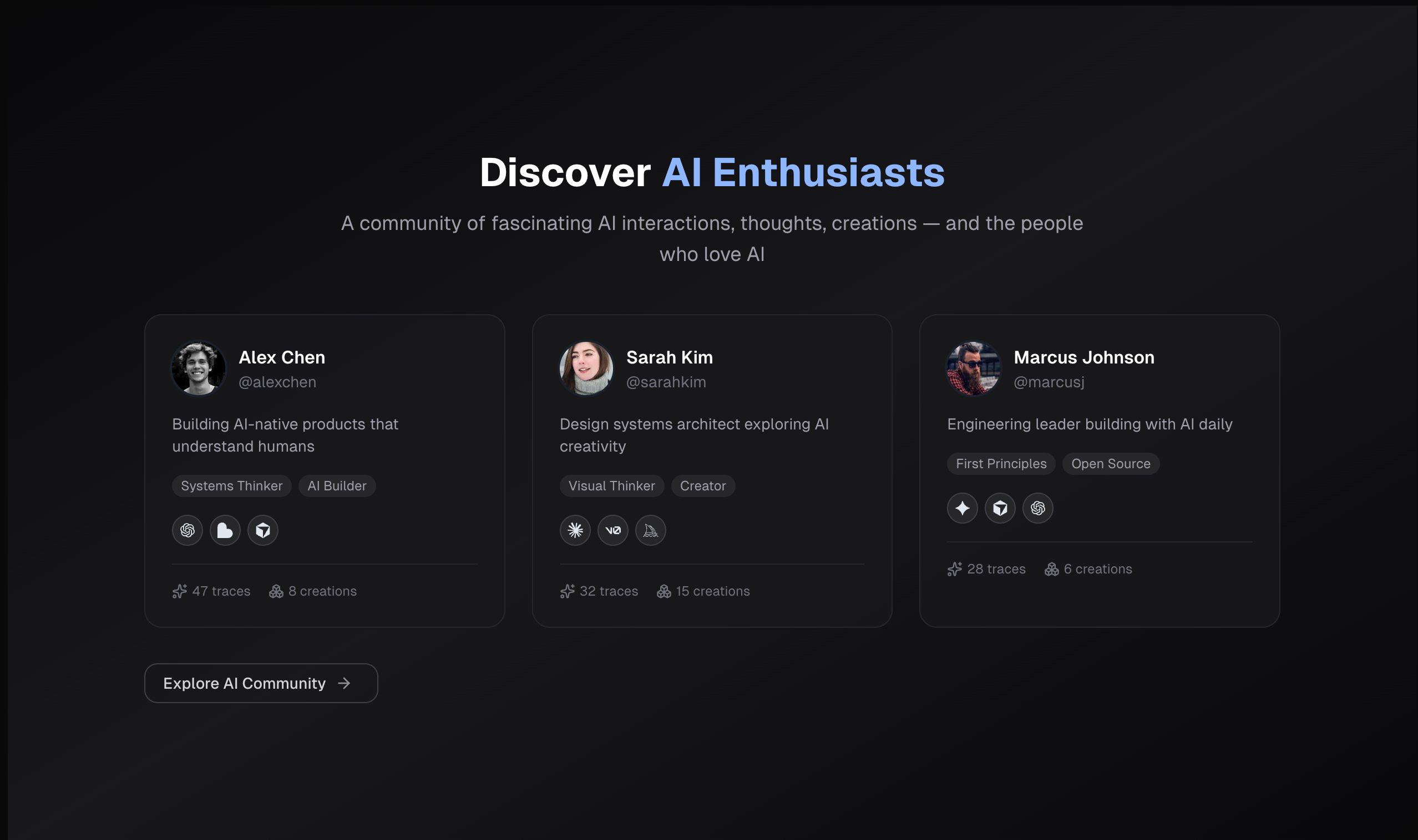 ## 概要 TraceMeは、AIでの実務作業を副産物として捉え、継続的に進化するプロフェッショナルアイデンティティへと変換するプラットフォーム。履歴書や静的プロフィールに頼らず、プロンプト・出...