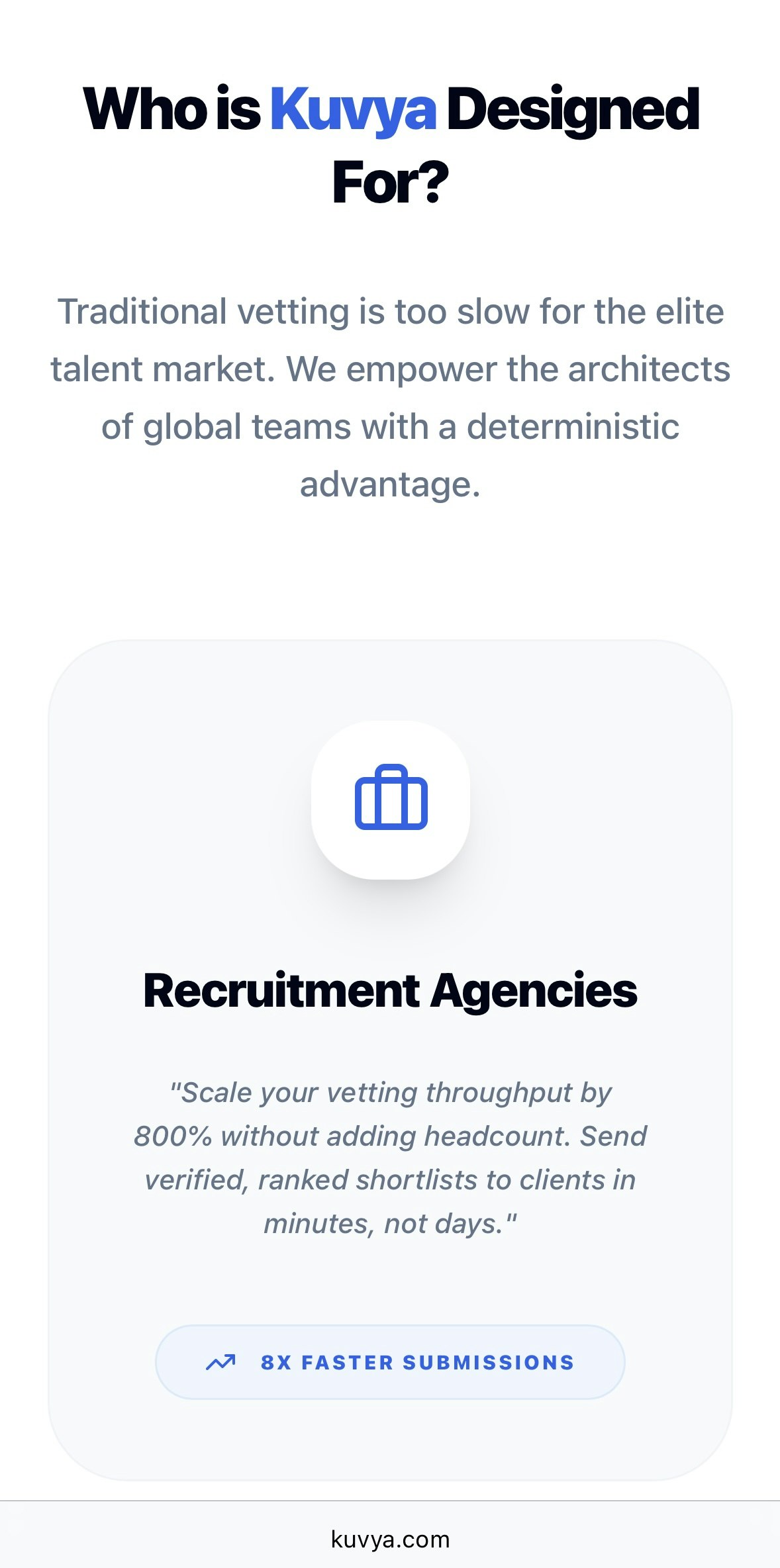 KuvyaはAI搭載の採用パートナーで、面接の事前審査・スケジューリング・データ管理といった退屈な作業を自動化し、人事担当者が人間関係構築に集中できるようサポートします。手動ミスを減らし、候補者...