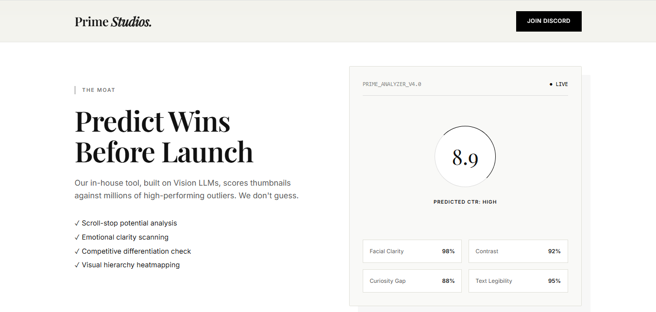 ## 概要 数百万のサムネイルで学習させた社内LLMを活用し、公開前にクリック率を予測できるYouTubeサムネイルデザインエージェンシー。CTR予測とデザイン提案を一括して提供し、クリエイター...