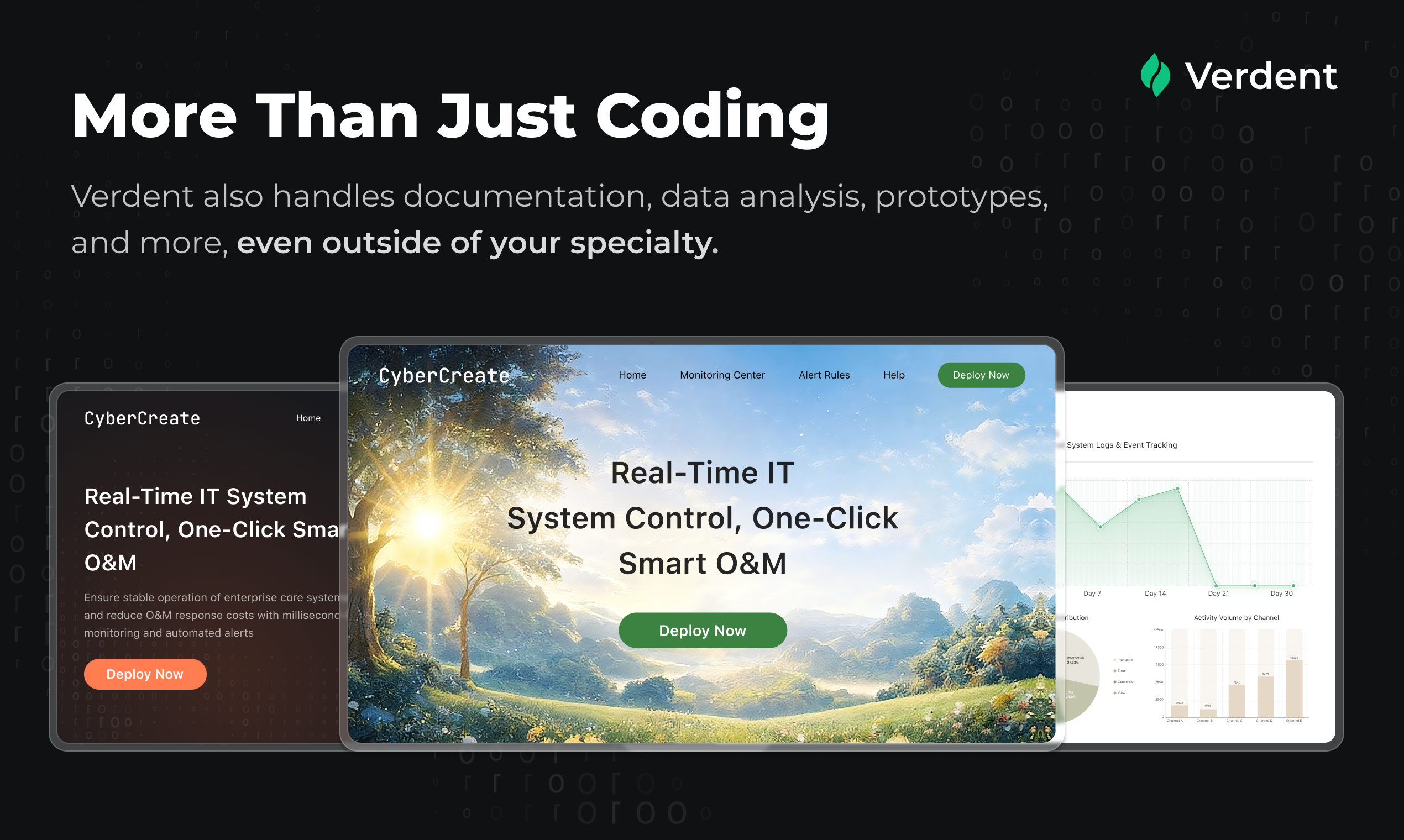 ## Verdent の総合概要 - AIネイティブな新世代の開発パートナー。深い集中を重視したチャット中心のUX で、邪魔を減らします。 - 主な特徴: 初期の不確実さを質問で解消→明確な計画...