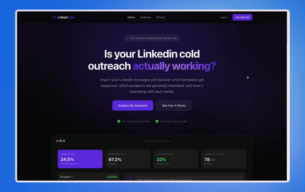 ##概要 LinkedInboxは過去のLinkedIn DMを分析して、実際に反応が得られる要因を可視化するツール。AIでテンプレートをクラスタリングし、どのオープナーや切り口が関心を生むかを...
