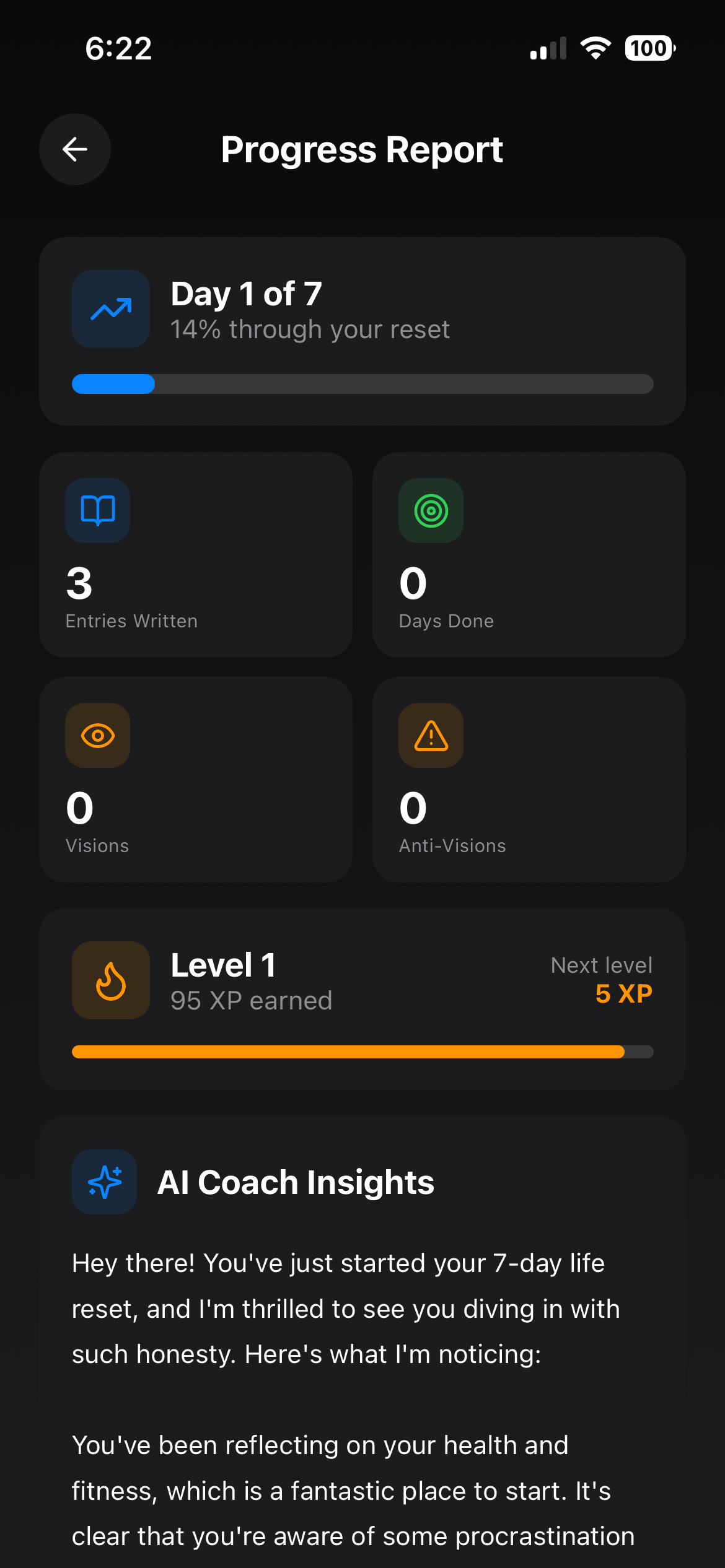 ## 概要 AIコーチが日記の裏を読み取り、見逃しがちなパターンや盲点を指摘する7日間の自己変革プロトコル。汎用プロンプトではなく Dan Koe の「7日間リセット」をベースに、日記入力を分析...