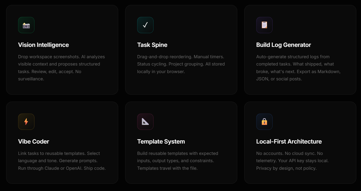 ## 概要 アイデアから製品化までを統合するプラットフォーム。スクリーンショットをAIが解析して日常業務をタスク化し、プロンプトエージェントへ容易に統合します。テンプレート機能とテンプレートメソ...