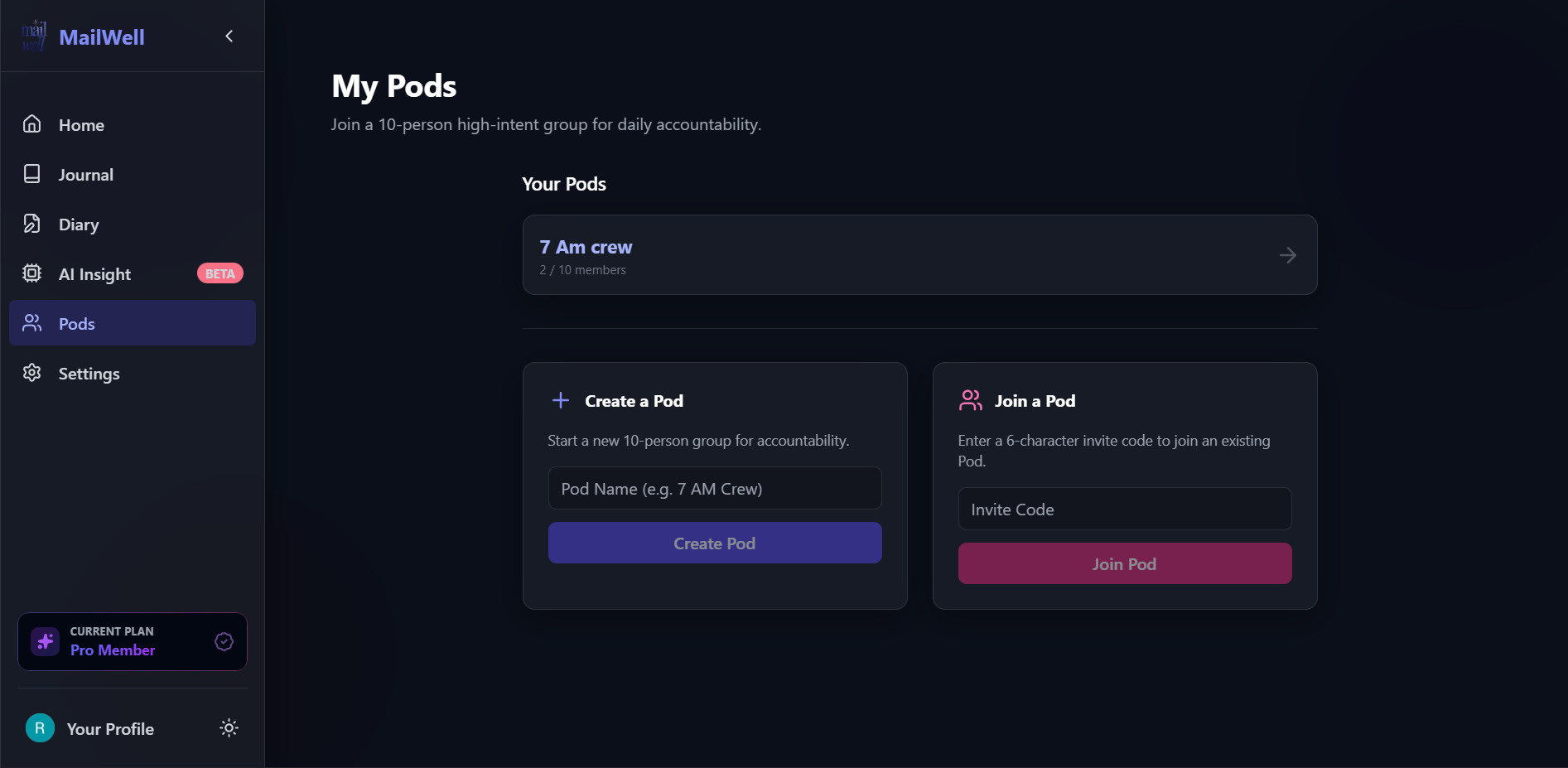 Mailwellは受信箱ベースの日記アプリ。白紙のページに尻込みせず、毎日のプロンプトへ返信するだけで日記を続けられる設計です。ボイスメモは自動文字起こし・同期、週次の振り返りレターで成長を見え...