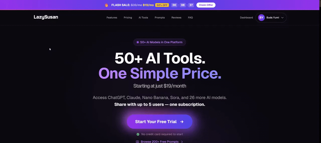 ## 概要 1つのブラウザタブから複数のAIをまとめて使える統合AIコマンドセンター。ChatGPT・Claude・Midjourney・Sora・Runwayなど50以上のAIモデルへアクセス...