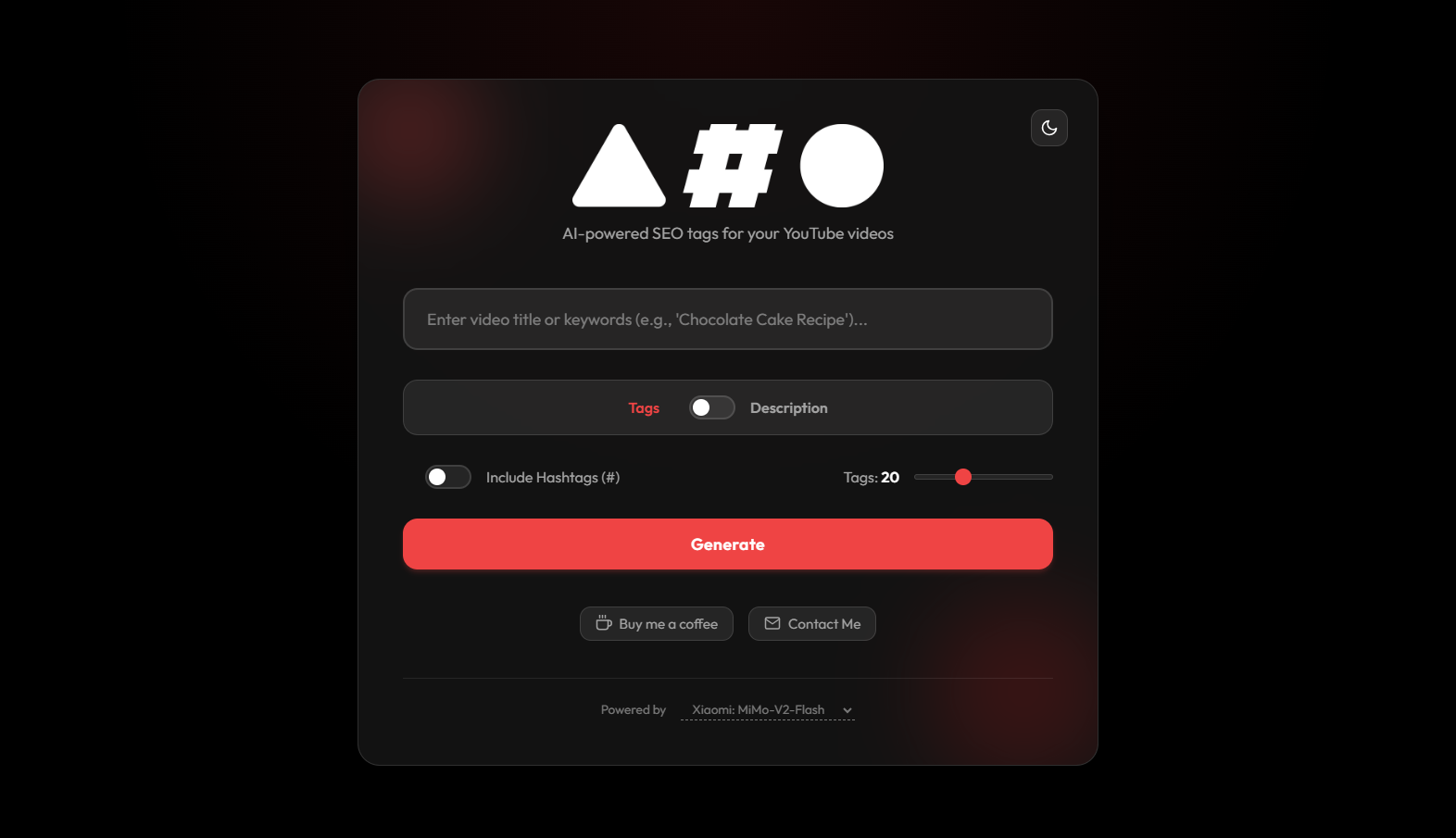 ##概要 AI搭載のYouTube動画用SEOタグ生成ツール。Oussama Idiken 提供。動画の露出を高め、適切な視聴者に届くよう、すぐに高ランクのタグを自動生成します。 ##特徴 -...