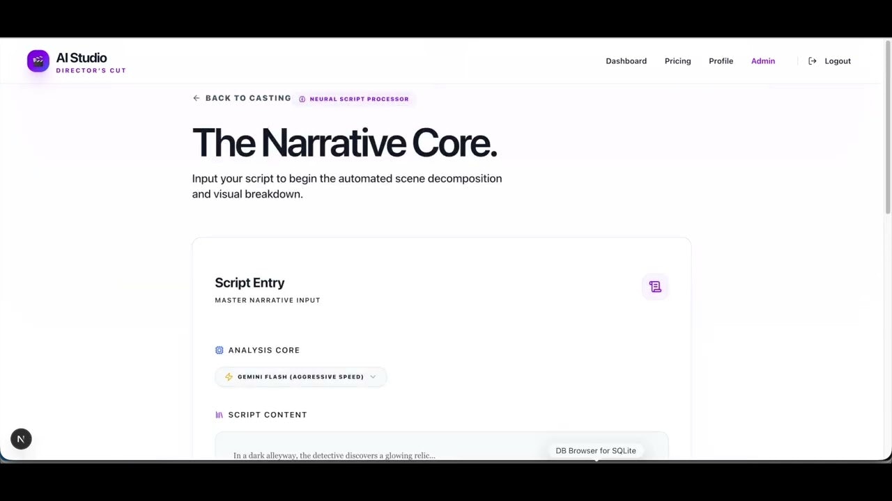 AIを活用して脚本を映画へと変換するツール。スクリプトをアップロードし、キャストを設定するだけで、登場人物の一貫性と映像表現の整合性を重視した全編動画を生成することを目指します。現状は開発中であ...