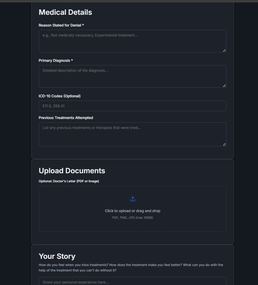 ##概要 - AIで医療保険の審査請求書を自動生成 - 承認率80%以上で、書き方の知識不足を解消 - 3ステップの簡単な流れで、個別の拒否理由に合わせた文面を作成