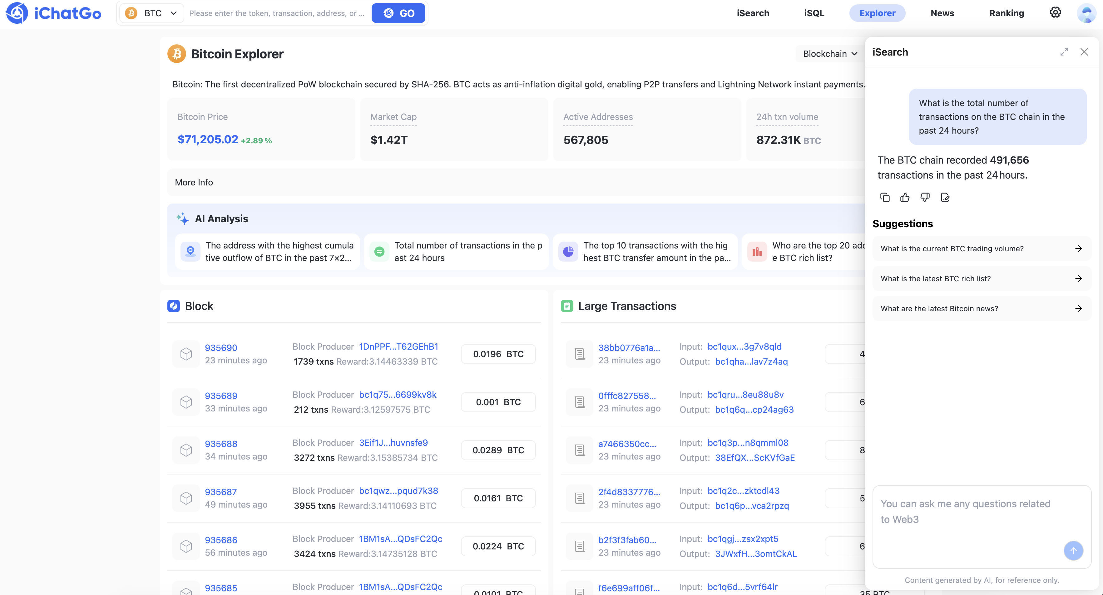 ## 製品概要 iChatGoは、対話型検索とオンチェーン/オフチェーンデータの完全統合を軸に、Web3データの断片化と高いクエリ障壁を解消するWeb3専用検索エンジンです。リアルタイムかつ高精...