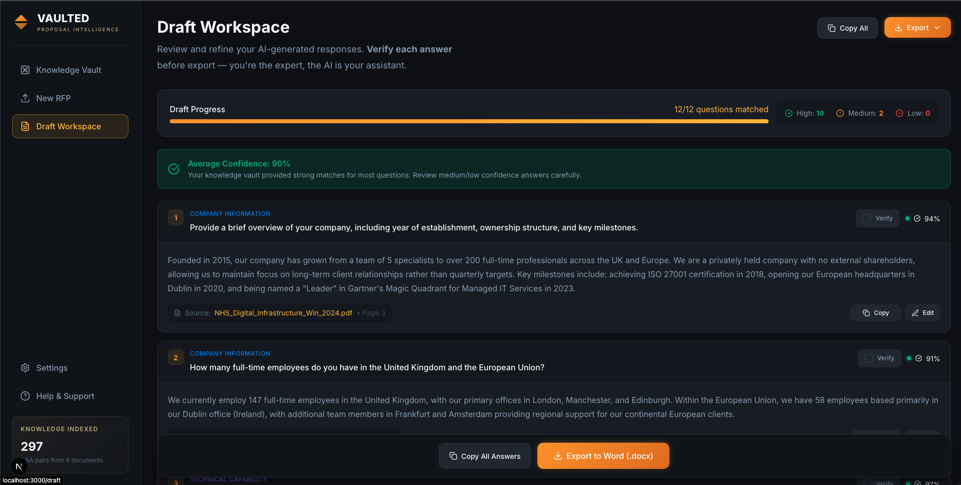 ##概要 過去の提案データを活用して、RFP対応を高速化するAI支援ツール。 ##特徴 - 過去提案のインデックス化 - Q&Aペア抽出 - セマンティック検索で新規質問に自動マッチ - 出典...