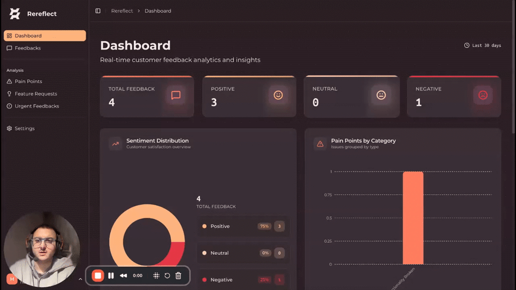 ## 概要 RereflectはSaaS企業向けのAI搭載顧客フィードバック分析ツール。感情分析、ペインポイント検出、機能リクエスト抽出、解約リスクアラートを1つのダッシュボードで提供。無料プラ...