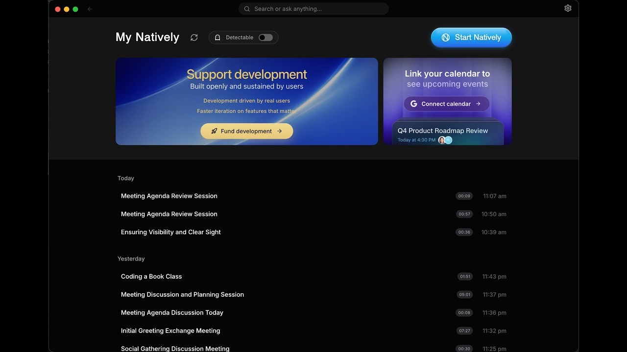 Cluelyのオープンソース代替として、会議・インタビュー・会話を支援する高速・プライバシー重視のAIアシスタント。ワンストップで利用可能で、ビデオ通話・画面共有・録画時にも検知されにくい点が特...