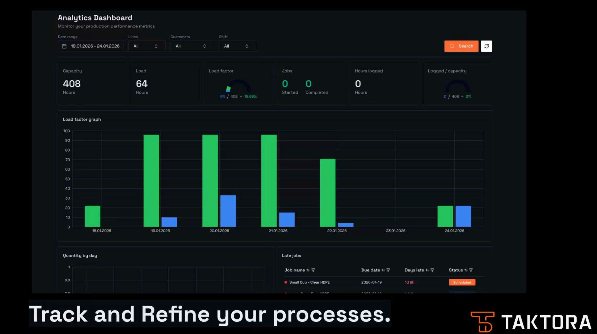 ## 概要 タクトラは工場のスケジューリング・チェンオーバー・生産をAIで最適化する運用支援ツール。現場状況をリアルタイムで反映し、障害を素早く分析して数秒で計画を再設計します。 ## 提供価...