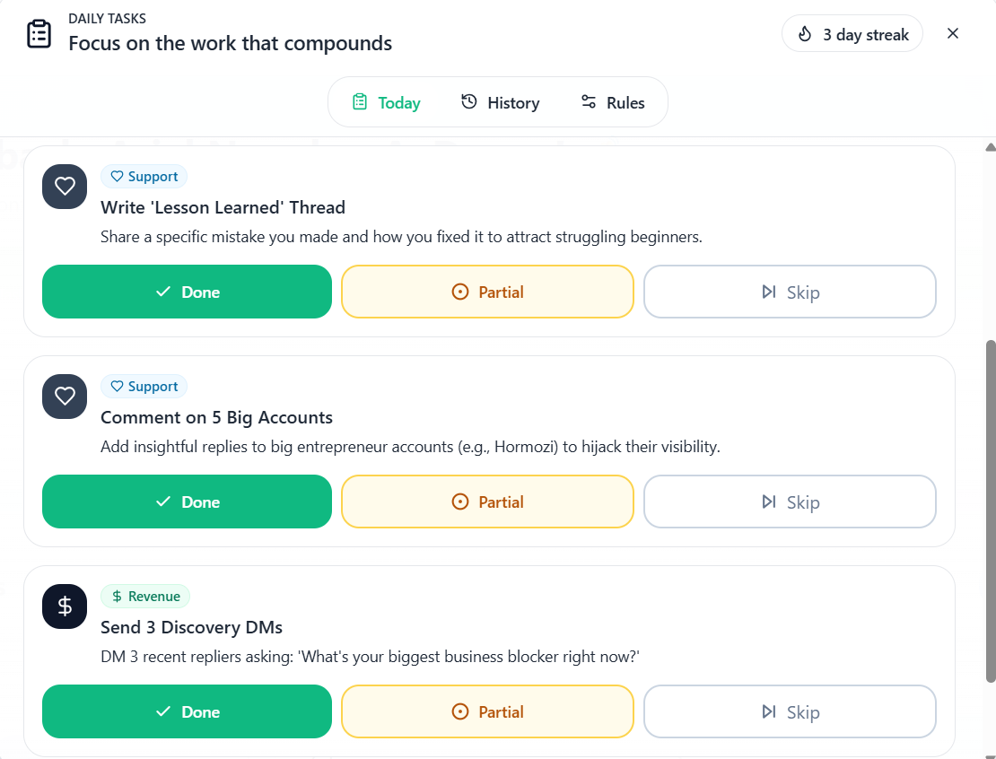 ##概要 Zelonは初の実行エンジン。第一原理推論×5つの普遍的な収益レバー×BJ FoggのB=MAPを組み合わせ、毎日3つのパーソナライズされた収益タスクを提供します。実行内容に基づき一晩...
