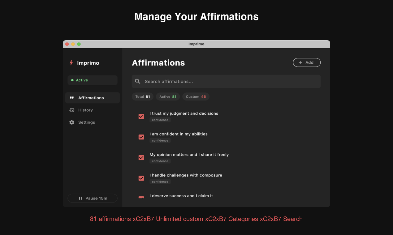 Imprimo は、起業家が日常で触れる情報過多が生む自己不安や比較を緩和し、職場での自己アイデンティティを静かに強化することを目指した、ローカルAI ポジティブツールです。主な特徴は、画面共有...