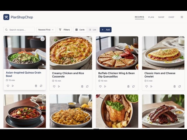 ## 概要 PlanShopChopは日々の夕食を決める悩みを解消するAI統合型キッチンアプリです。レシピの取り込み、計画、買い物、調理を1つのアプリで完結します。 ## 主な特徴 - レシピ...