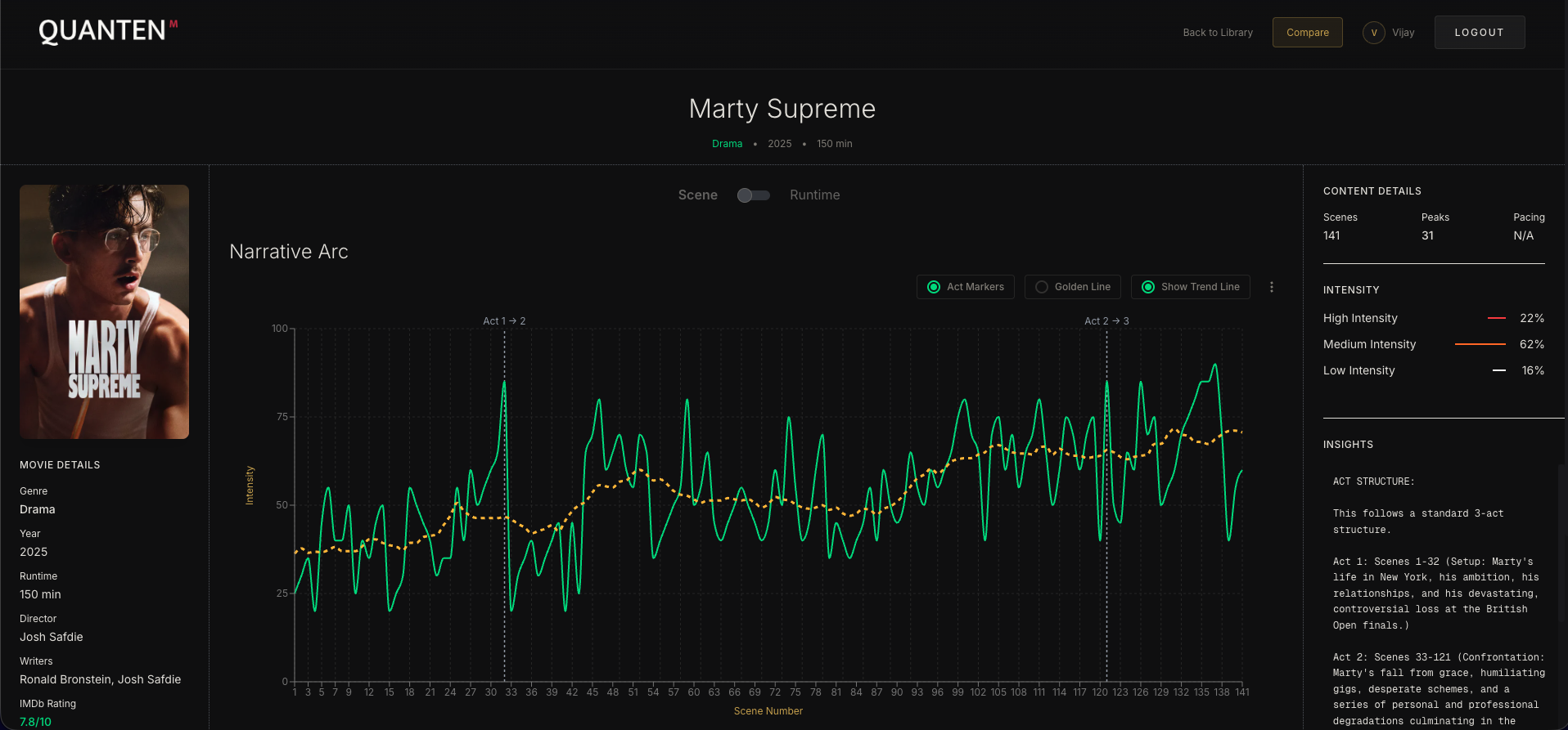 ## 概要 100本超のベンチマーク映画の緊張感の推移を可視化し、制作前に自分のアークを設計できるAI映像構成ツール。脚本をアップロードしてベンチマークと比較し、弱点を把握できる。 ## 特徴...