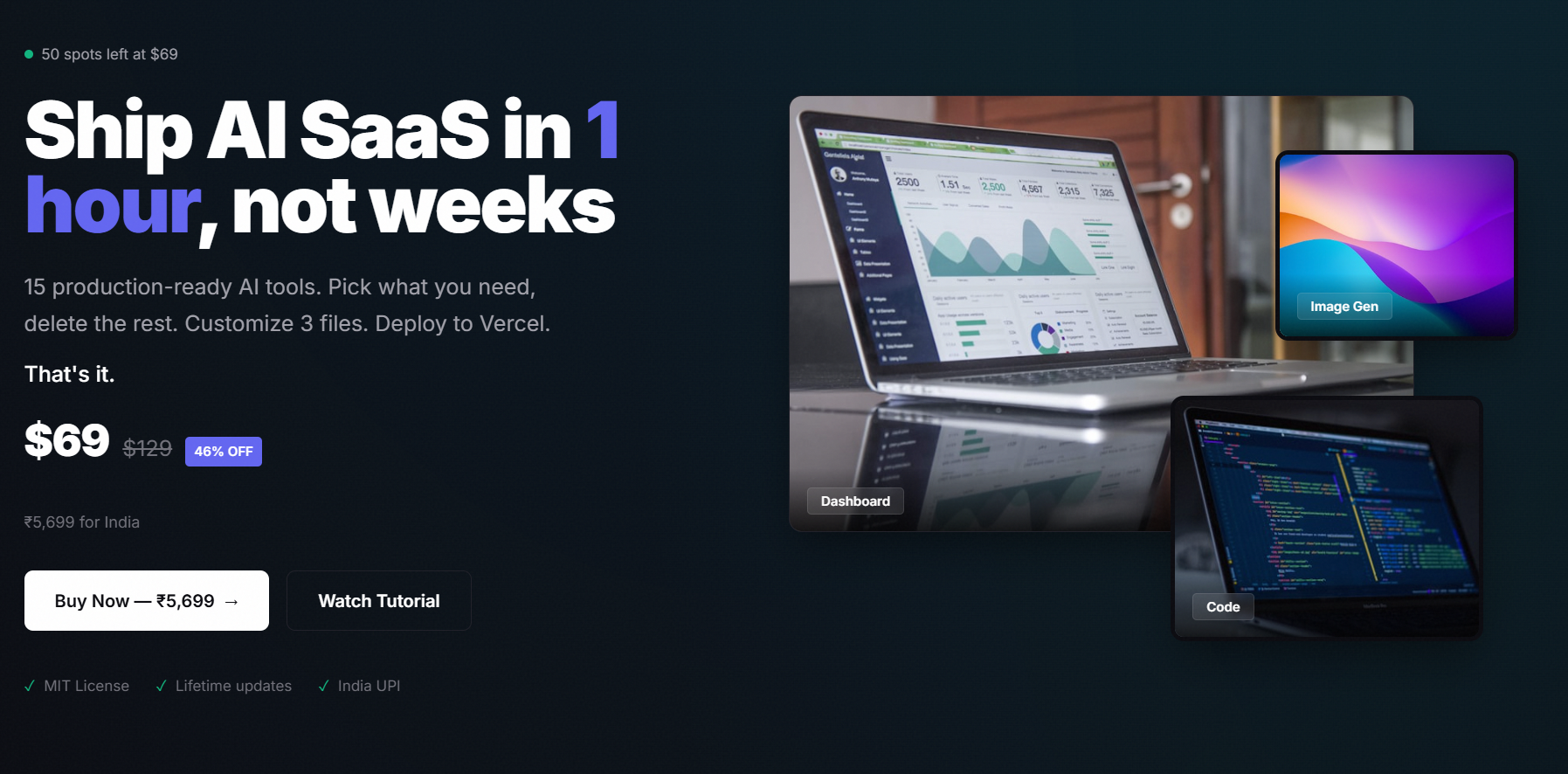 15のツールと決済・認証を備え、1時間でAI SaaSを出荷