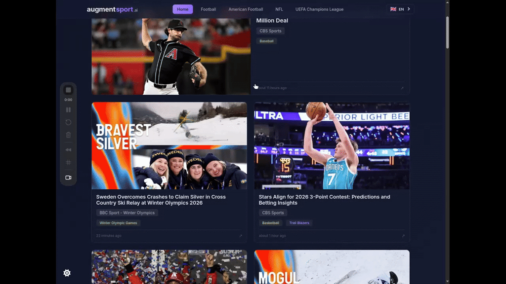 ## 概要 AugmentSport.aiは200以上のニュース源をリアルタイムに集約し、AI要約と翻訳を提供。移籍情報・試合レポ・クラブ更新を1画面で要点だけ把握。6言語対応・お気に入りクラブ...
