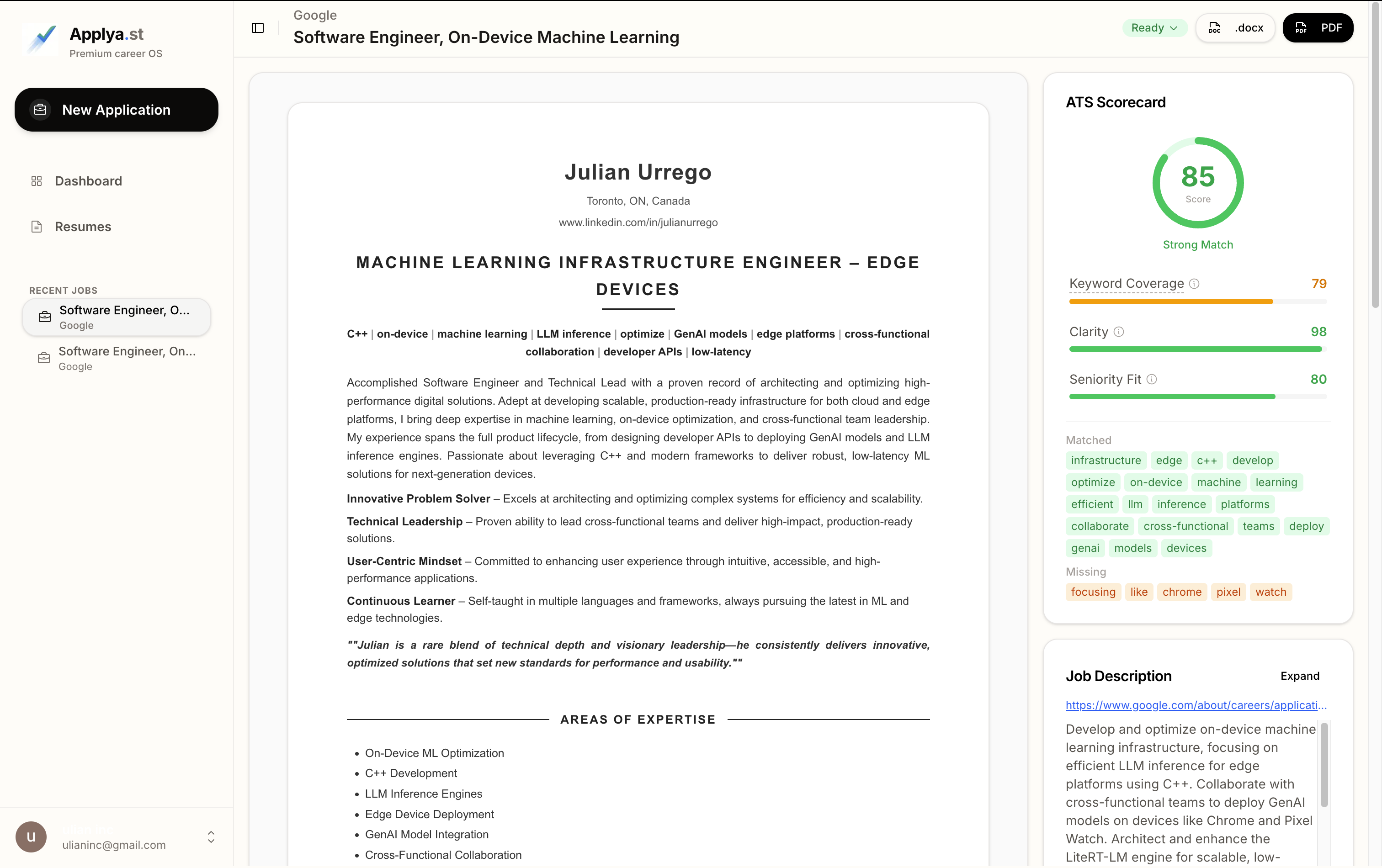 ## 概要 Applya.stは、ATSフィルターを突破するAI履歴書最適化ツールです。履歴書を1回アップロードし、求人情報を貼り付けるだけで、60秒で最適化済みの履歴書とカバーレターを生成しま...