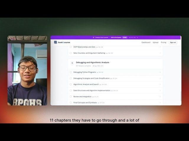 ## 概要 PDF教科書やノートをアップロードすると、章立て・レッスン・クイズ・間隔反復のフラッシュカード・AIチューター・知識マップを備えた構造化コースへ自動変換します。各レッスンには説明・例...
