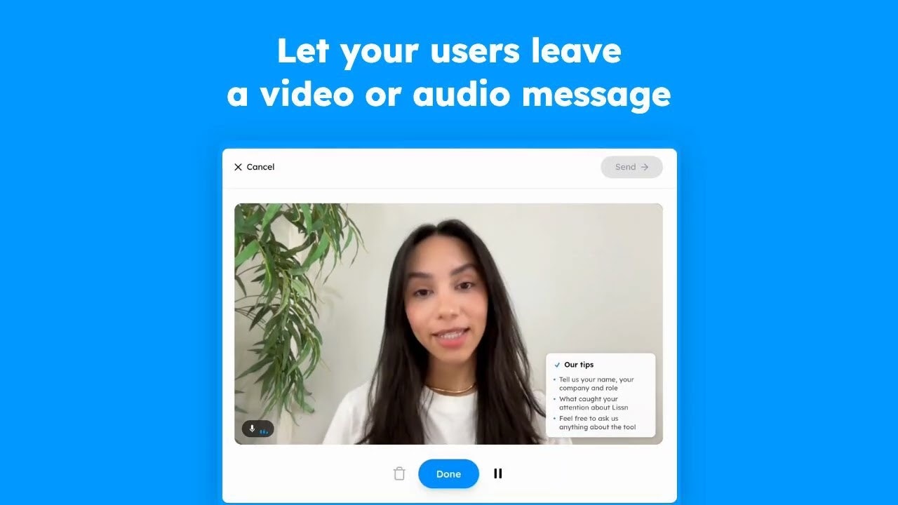 ## 概要 Lissnはウェブサイト訪問者が退屈なフォームの代わりに音声・動画で連絡を残せるシンプルなウィジェットです。入力疲れや長い項目、アクセシビリティの問題で離脱するモバイル利用者への対策...