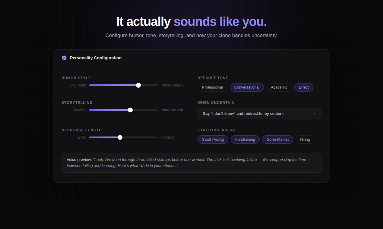 Brussle は、あなたの実データを学習して作成するAIクローンを核とするサービスです。専用ページを持ち、24/7で観客と対話し、過去の会話相手をセッションを跨いで記憶します。コンテンツ、声、...