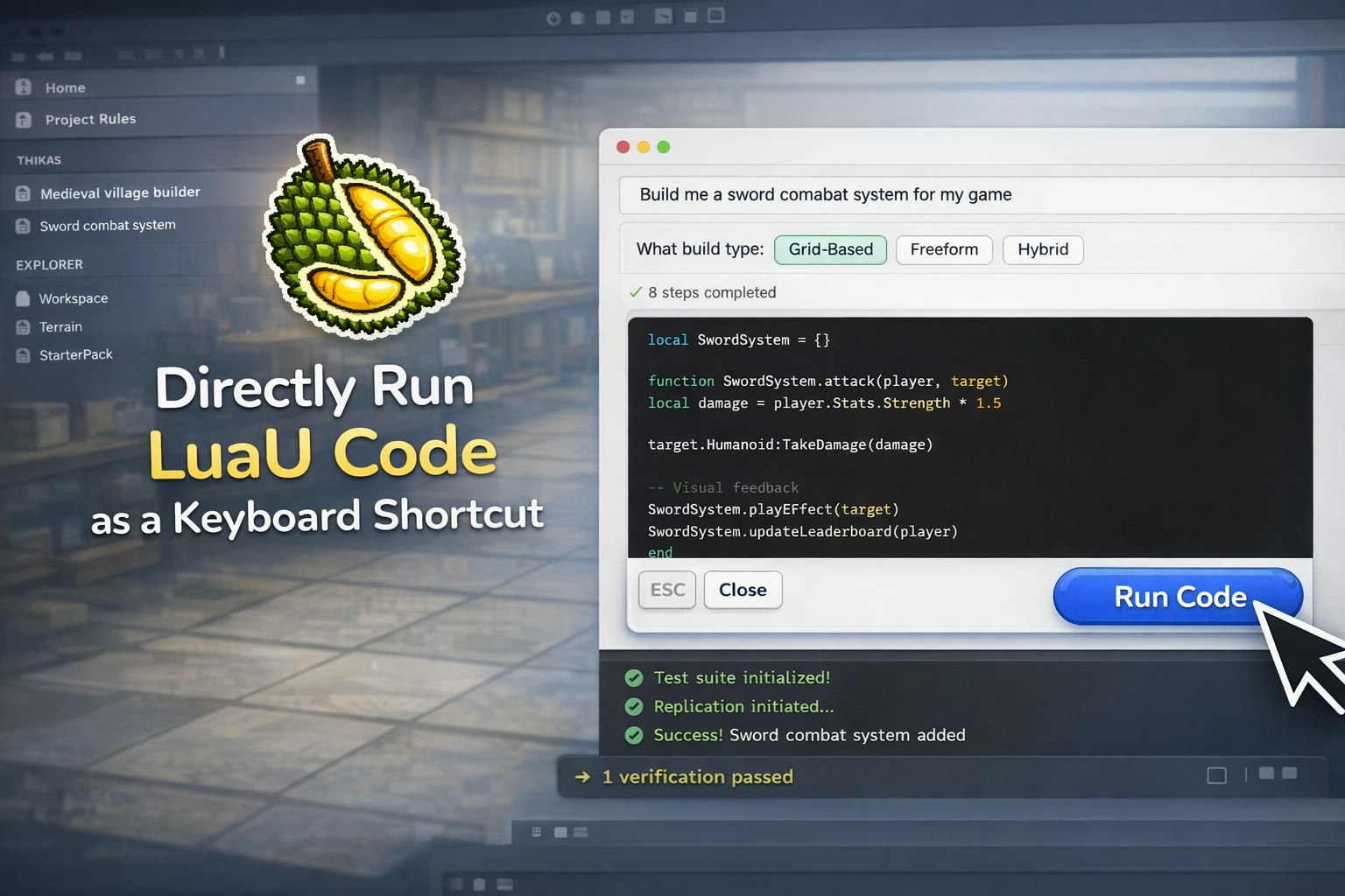 Roblox Studioと深く統合されたオープンソースの AI コーディングアシスタント。Luau スクリプトの編集、インスタンス操作、DataStores の照会、Toolbox の検索をサ...
