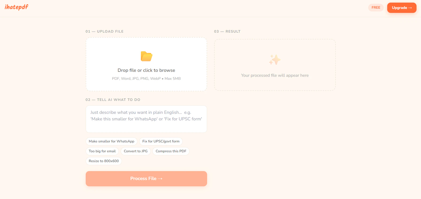政府の就職・申請フォーム用写真とPDFのリサイズ・圧縮・変換を、平易な英語で手軽に実行できる使い勝手の良いツール。ソフトウェア不要で無料利用。