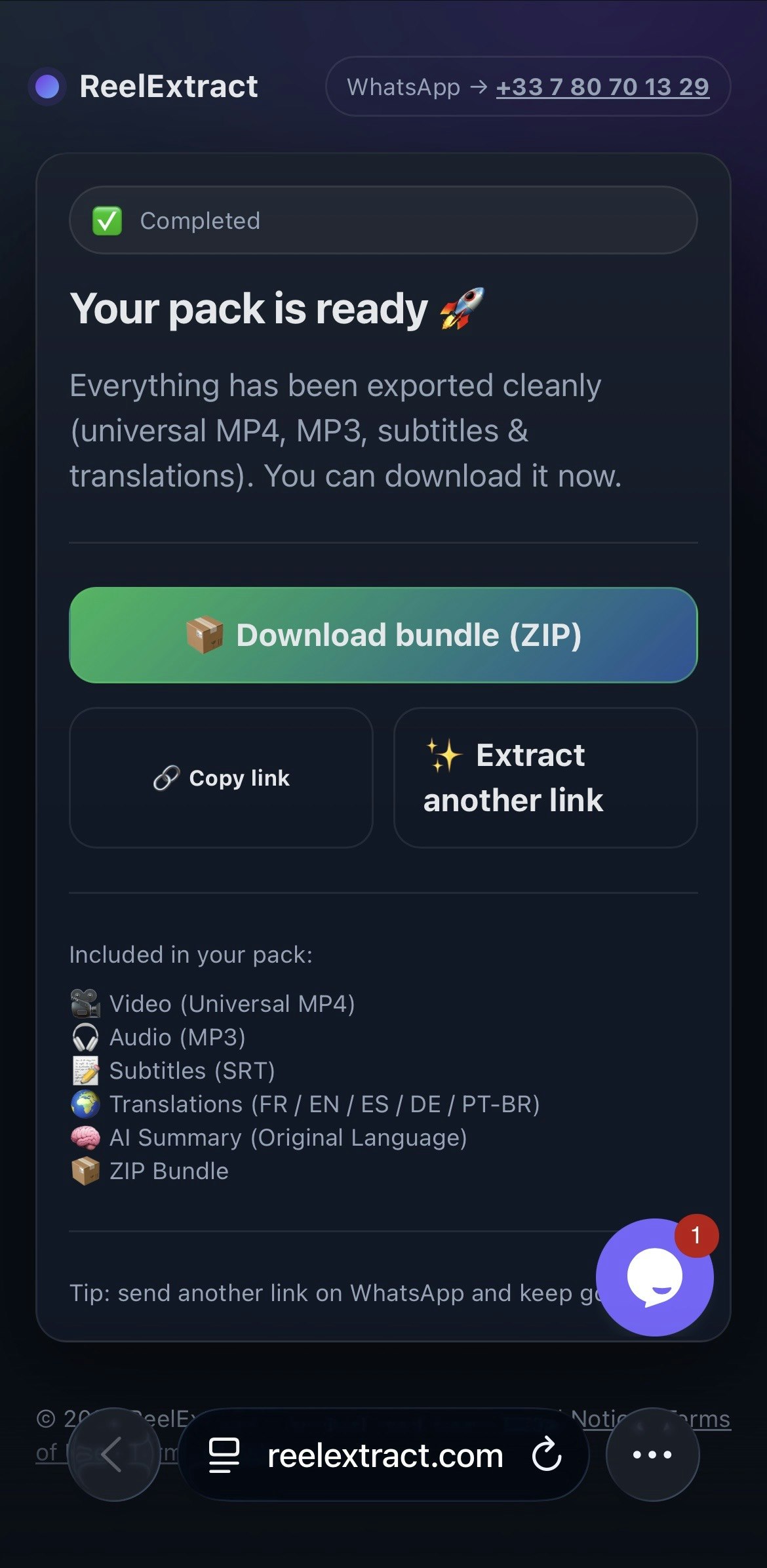 ## 概要 1本のショート動画を1度の操作でMP4/MP3、字幕、AI要約まで含む複数フォーマットの素材セットに変換して返す、WhatsAppベースの動画再利用ツール。リンクを貼るだけで自動処理...