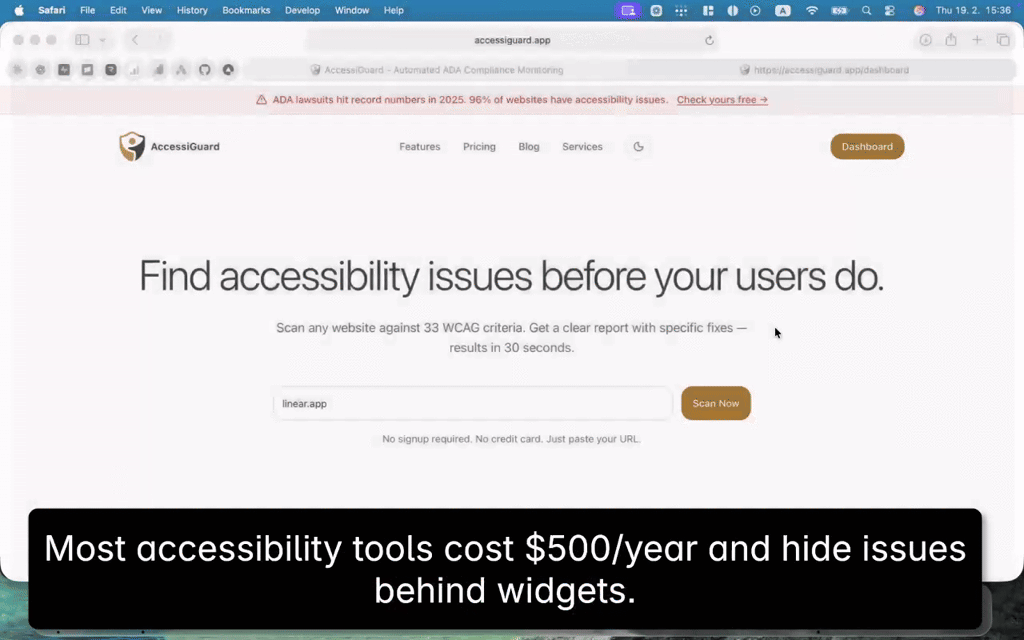 現実の問題を見つける無料のWCAGスキャナー。問題を隠さない。