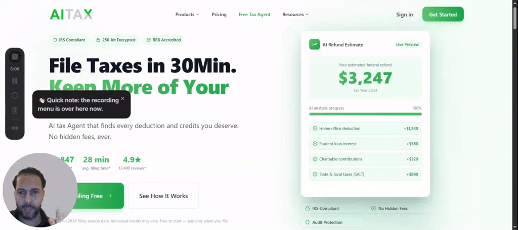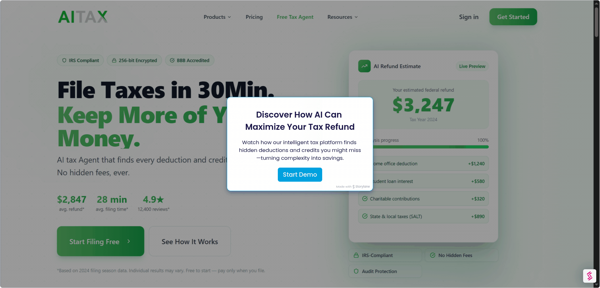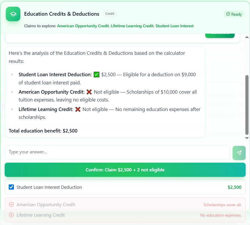 ## 概要 - AI搭載の税務申告アシスタント。 - 支出・控除・税額控除を自動で発見し、適格性を判断し、申請すべき金額を提案します。 - 従来ツールが聞かない質問をAIが分析して不足分を埋め、...