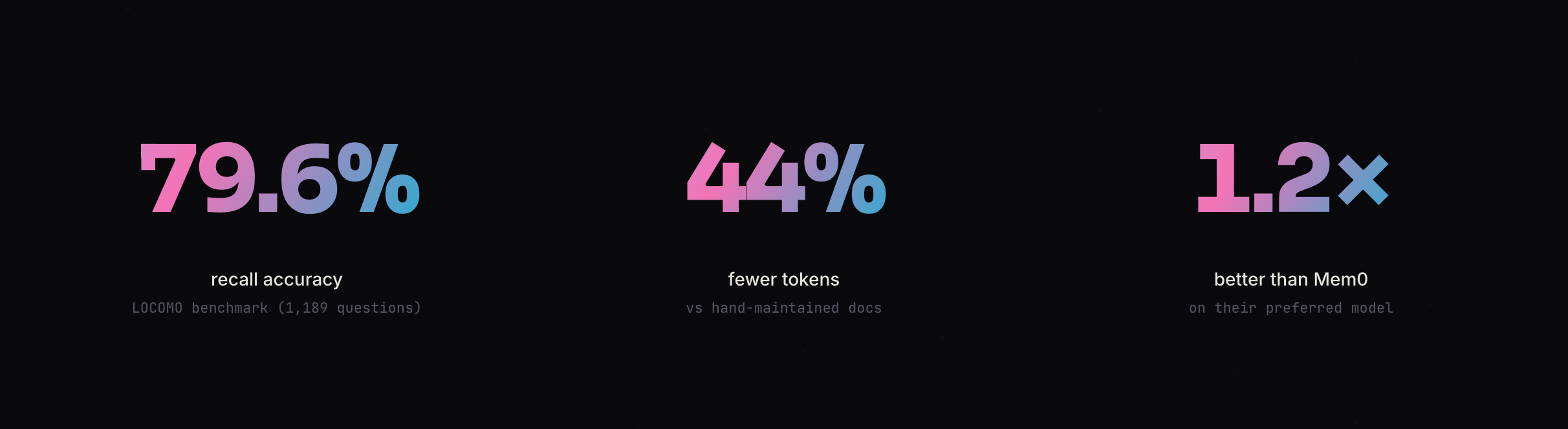 ## 概要 EngramはAIエージェントの長期記憶を実現する記憶システム。セッション間の文脈を自動で結びつけ、リコール時に適切な情報を提示します。全履歴をプロンプトに詰め込む従来手法よりトーク...