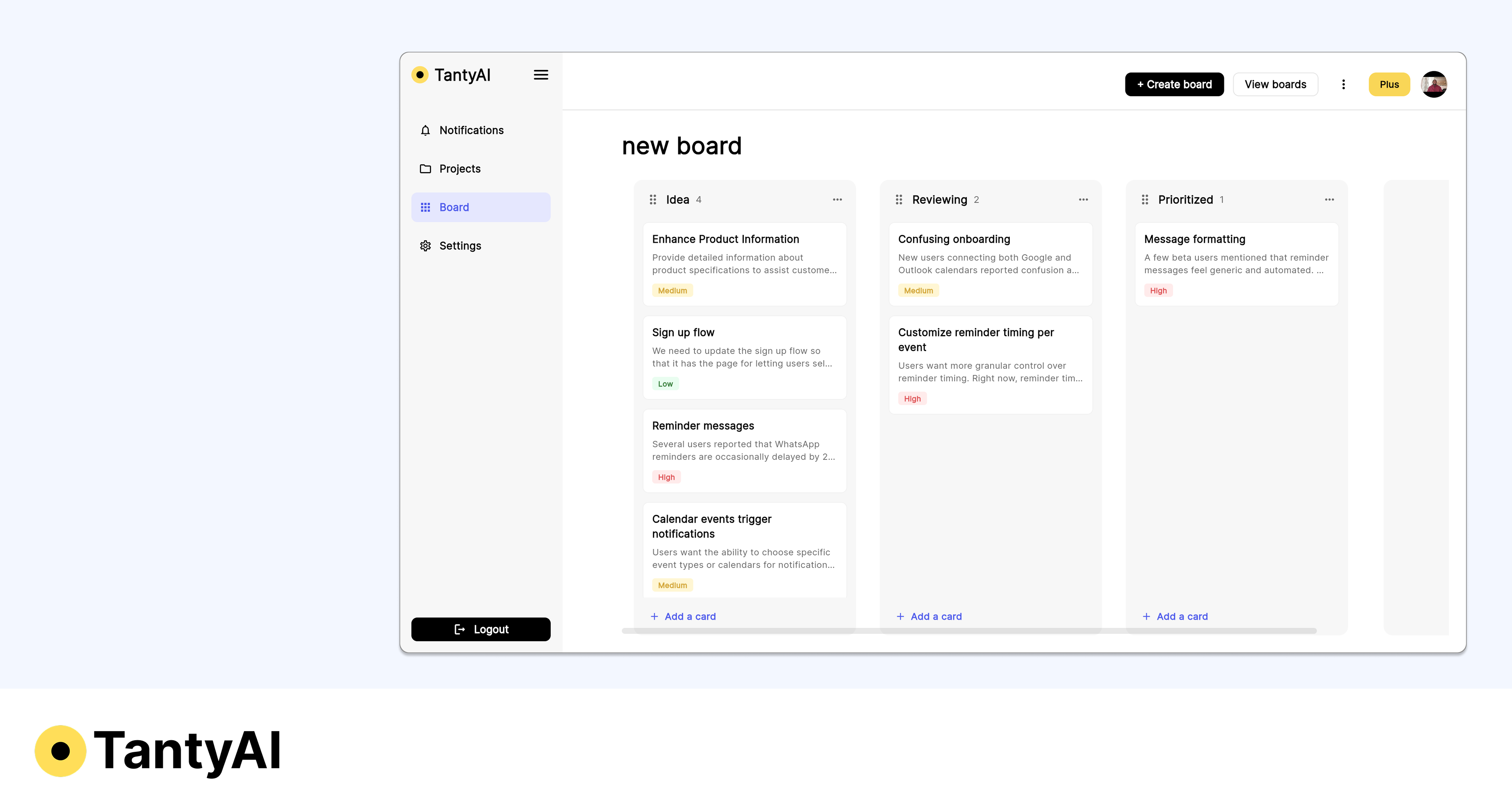 ## 概要 TantyAIは録音・動画・文字起こしデータを自動で構造化された洞察へ変換します。数分で主要テーマ、要望、痛点、感情のパターンを抽出・可視化します。大規模に顧客対話を運用するチームに...