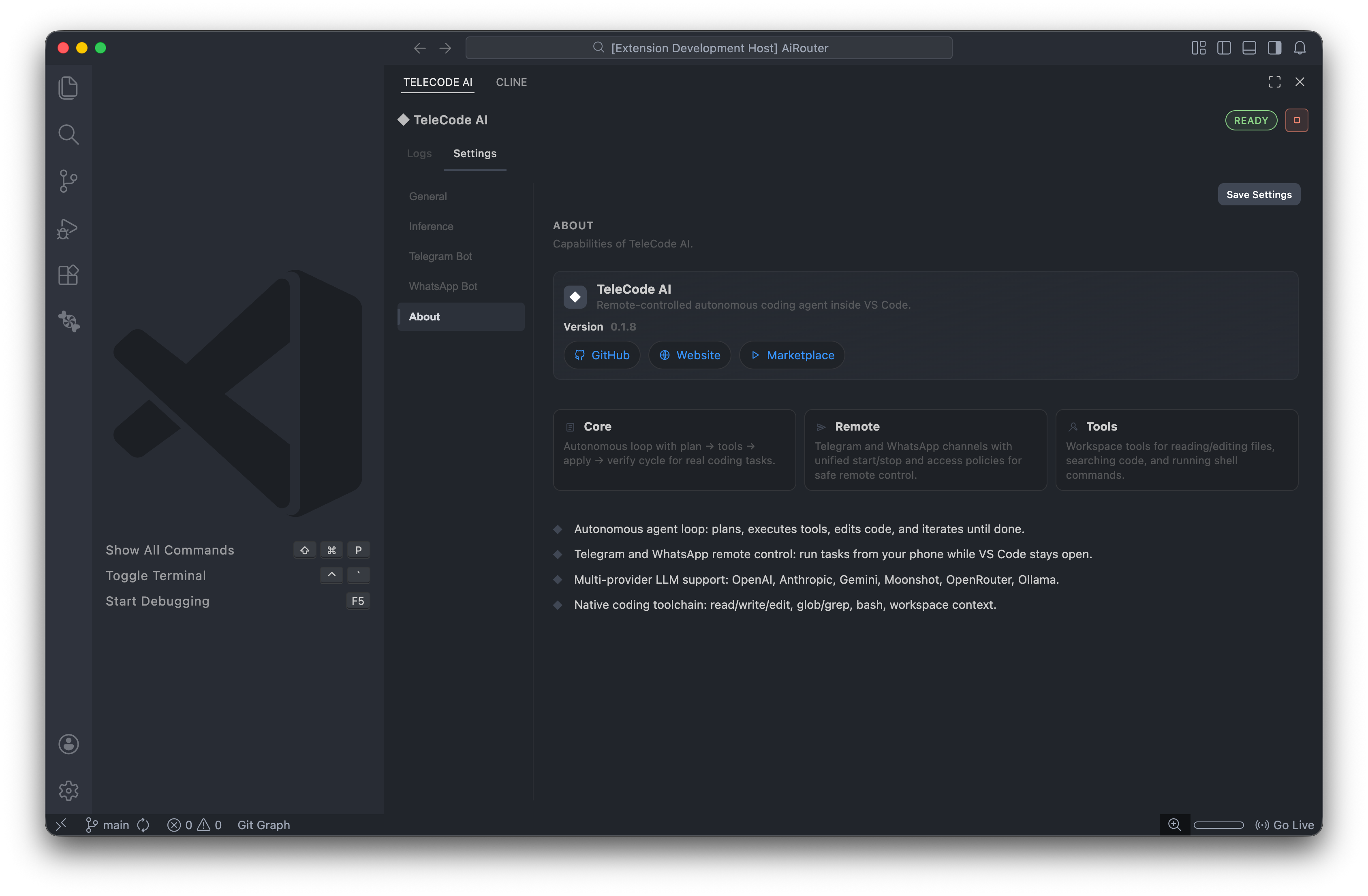 ## 概要 TeleCode AIはVS Code内部に組み込まれた自律的なコーディングエージェントです。TelegramとWhatsAppからローカル/リモートでタスクを起動し、計画→ツール実...
