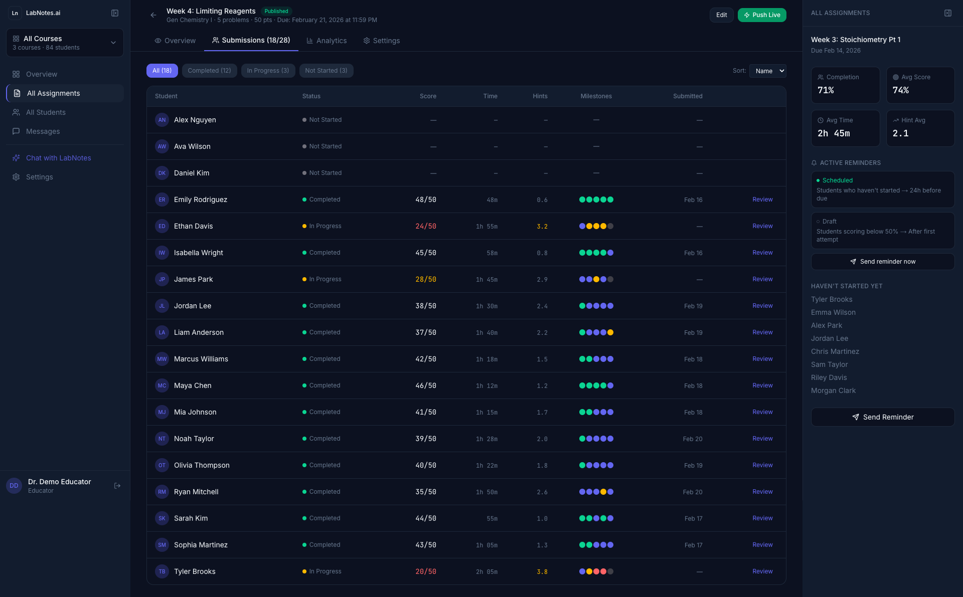 ## 概要 LabNotes.aiは高等教育のSTEM分野に特化したAI搭載のソクラテス式チュータリングシステム。解答をそのまま渡す従来のAIとは異なり、問いとメタ認知的な問いを用いて学生を問題...