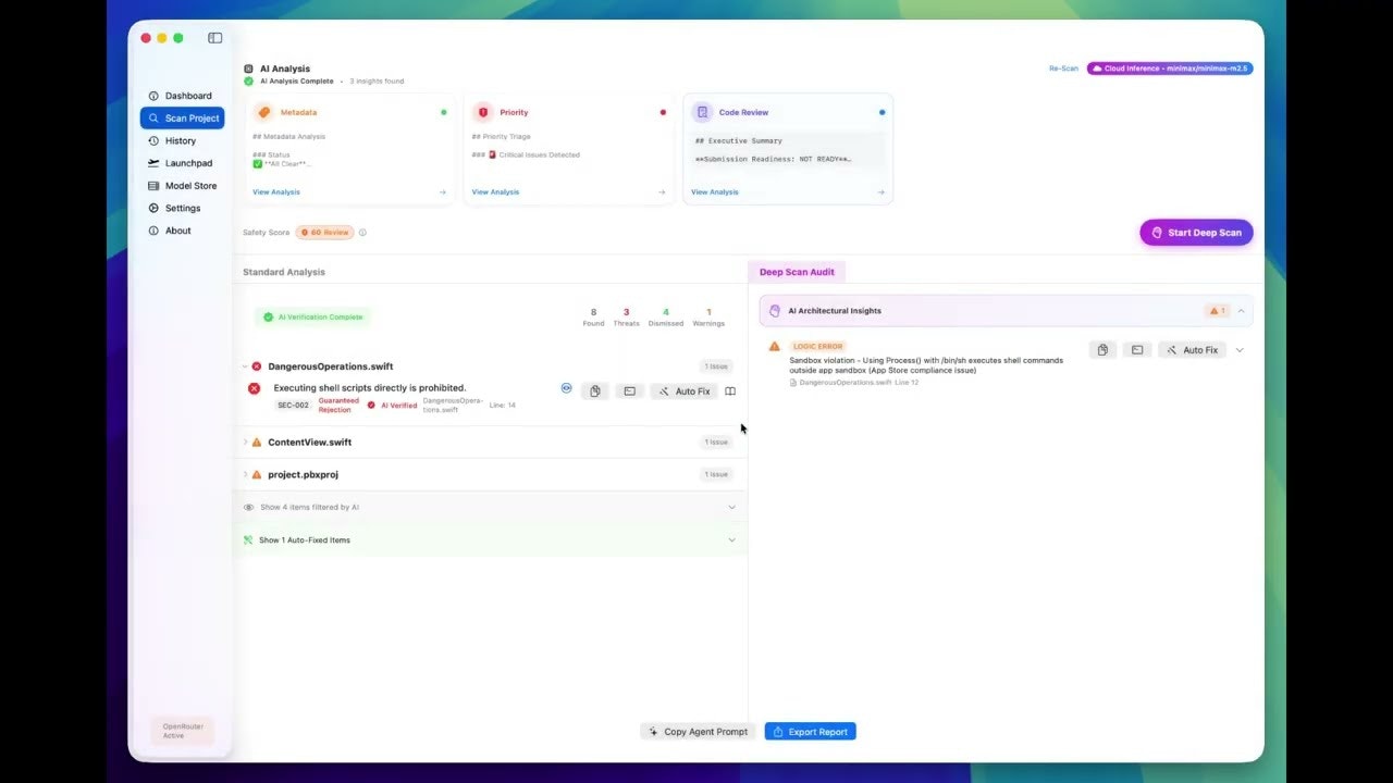 ## 概要 Oxbit PreFlight は、Apple エコシステム向け開発者のための AI 支援型事前チェックツールです。サンドボックス違反やプライバシー問題を検出し、審査リスクを低減しま...