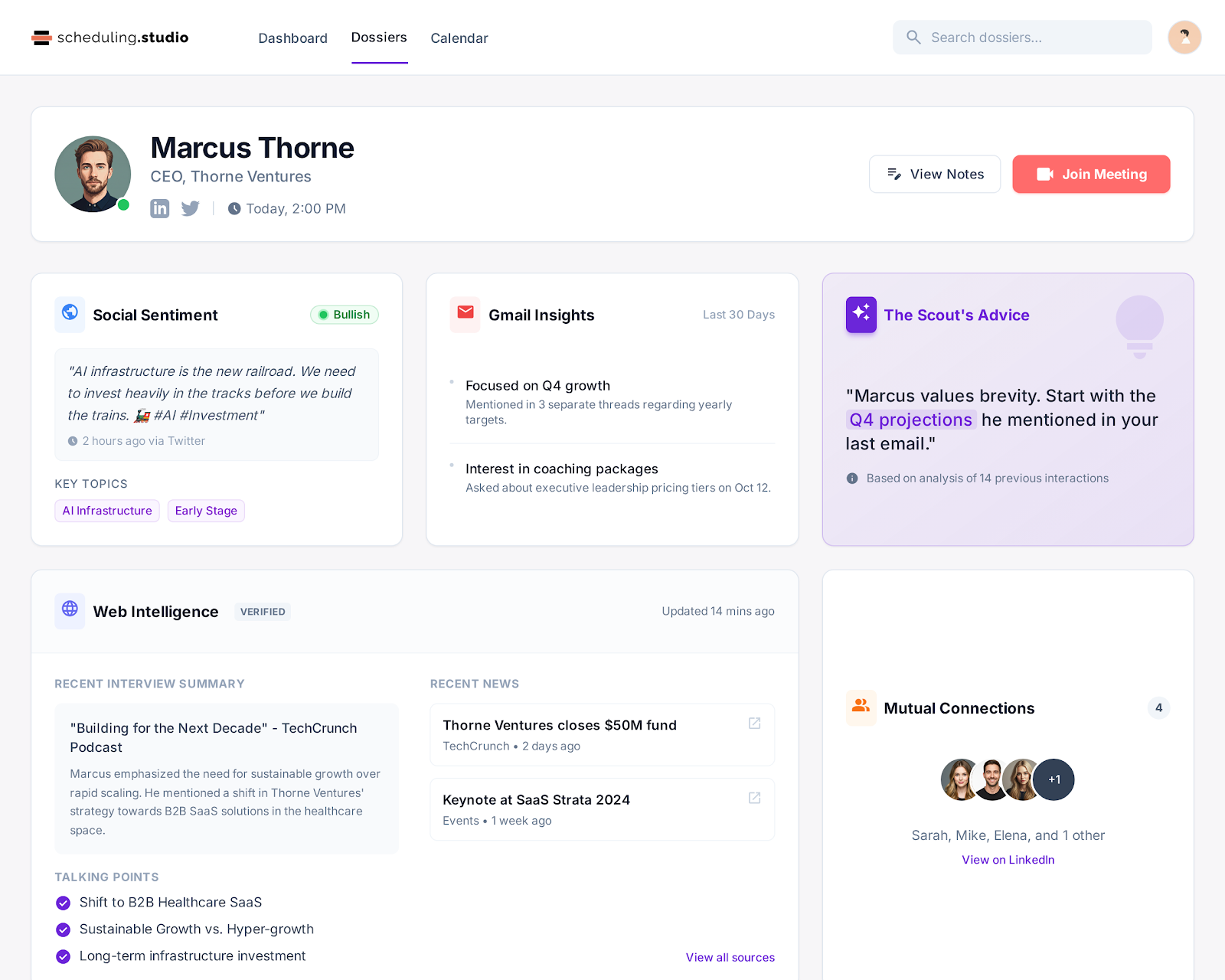 ## 概要 - Scheduling Studioは、時間を守るAI式エグゼクティブアシスタントです。従来のツールが空き枠を埋めるだけなのに対し、Guardianがスケジュール負荷を監視して回復...