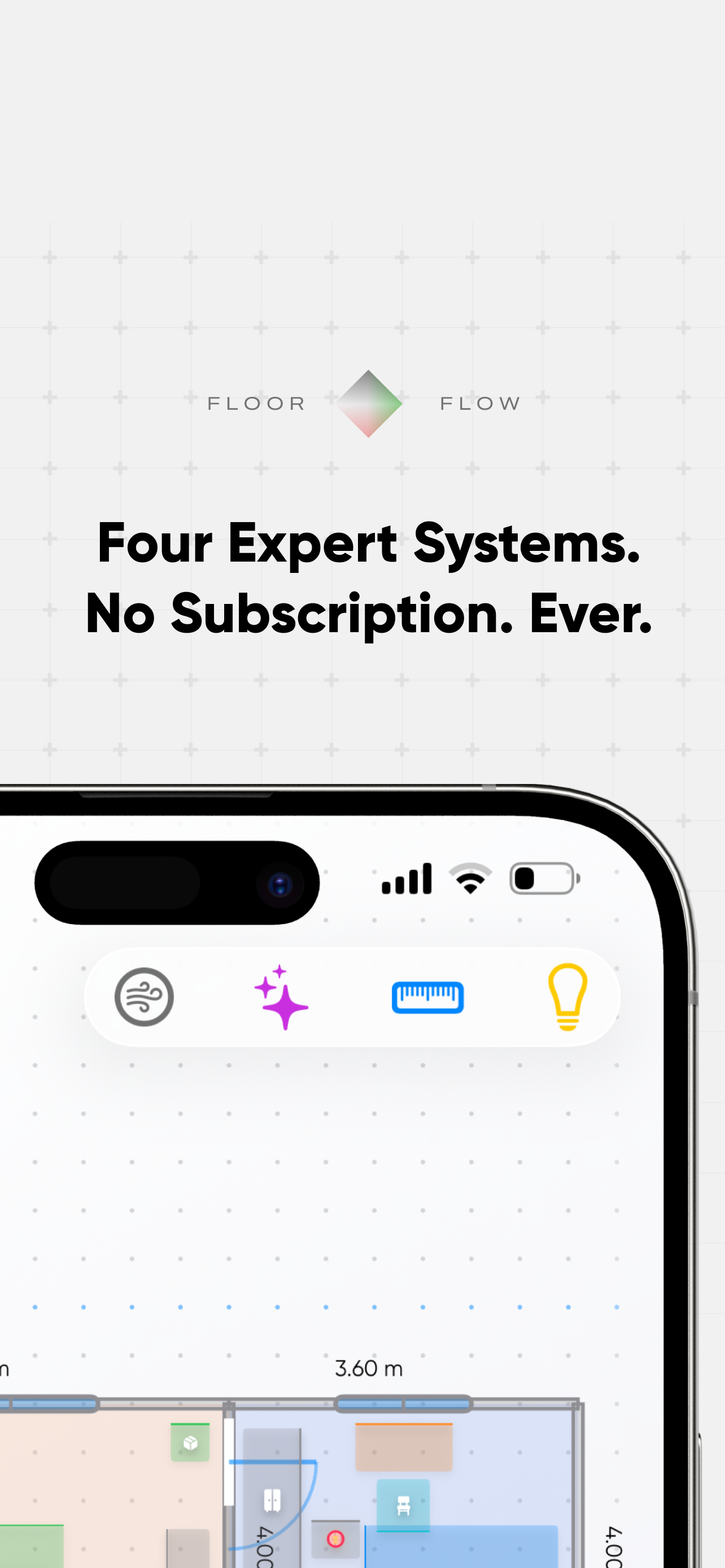 FloorFlowは風水・照明・デザイン検証を統合したiOS用の2D部屋プランナー。リアルタイム4層分析で、風水の気の流れと部屋のバランス、照明のカバレッジ、NKBA/OSHA/ADA準拠のチェ...