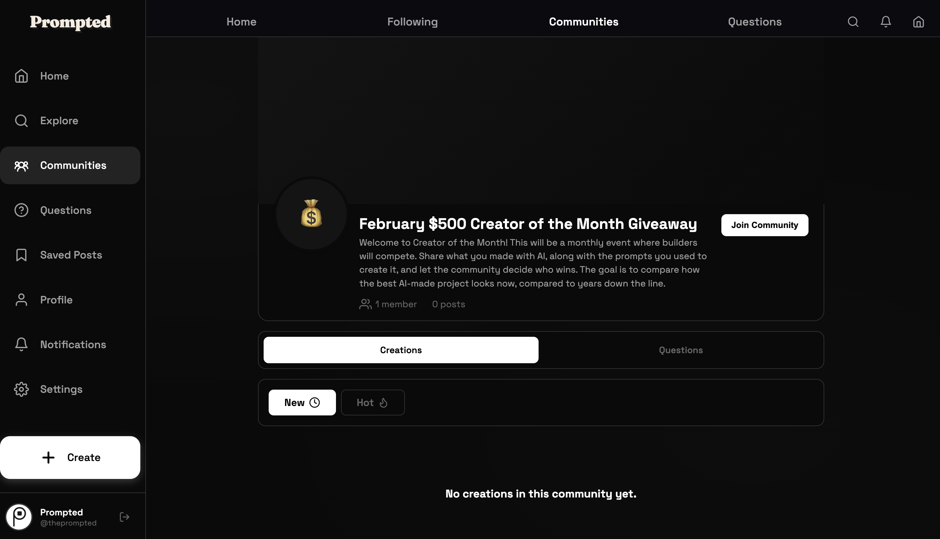 ## 概要 - Prompted は、AI クリエイションの作り方を公開する1つのフィード。投稿にはプロンプトとワークフローが添えられ、結果だけでなく作成手順の再現性を高めます。 - 普通のユー...