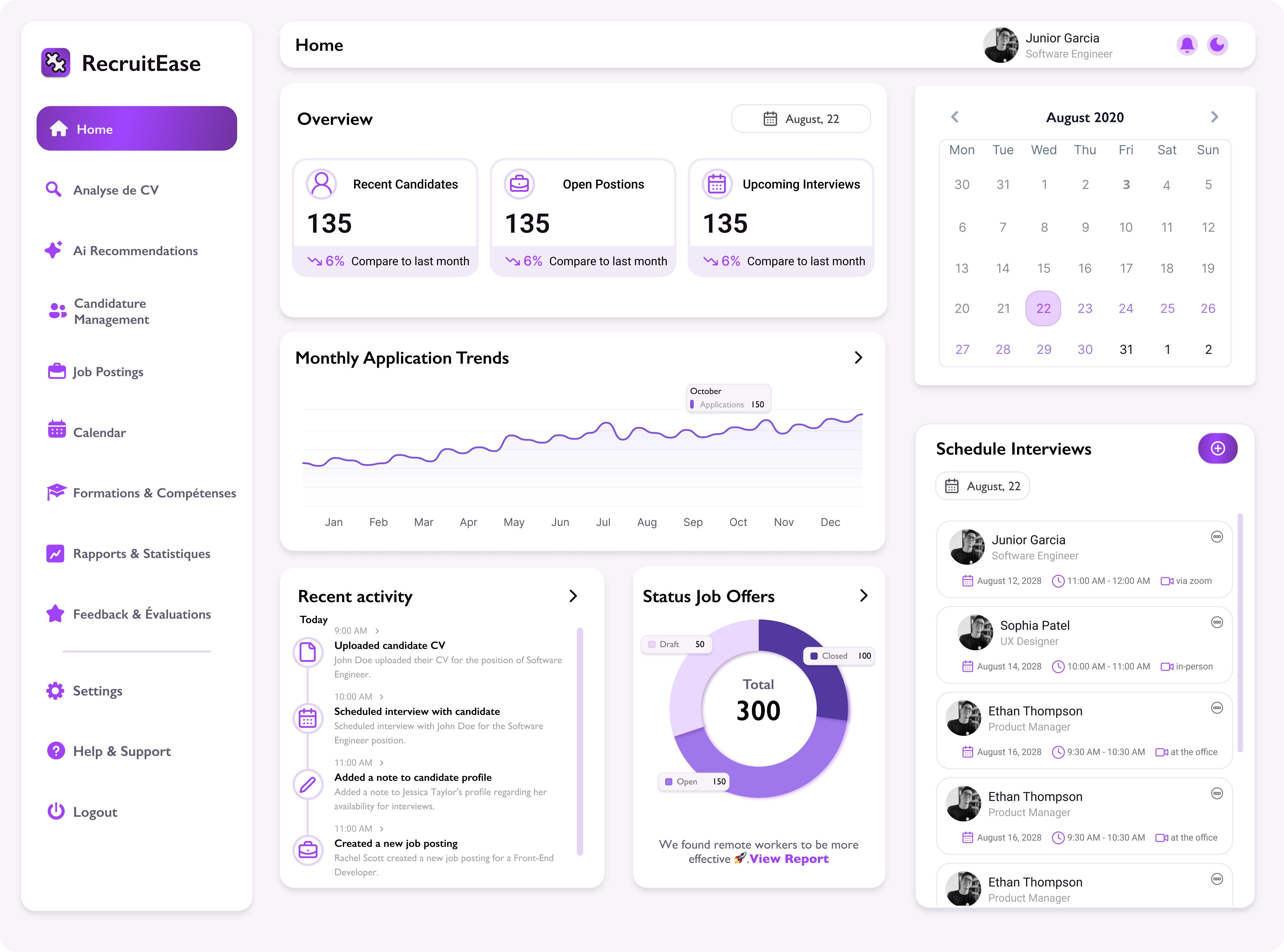 ## 概要 RecruitEasyは現代のチームに最適化されたAI搭載の採用管理システム(ATS)です。AIがスキル・経験・カルチャー適合性に基づき候補者を瞬時に分析・ランク付けし、手動のスクリ...