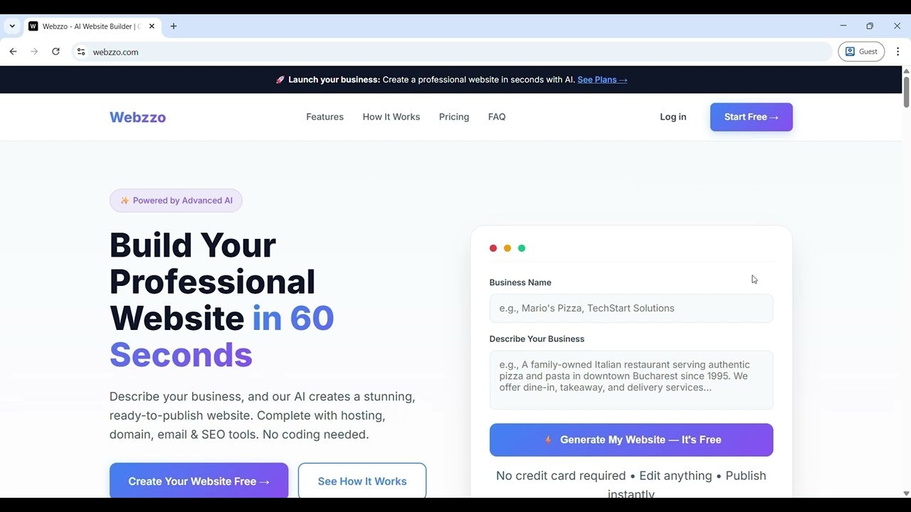 AIが数秒でウェブサイトを作成。視覚的に編集可能。
